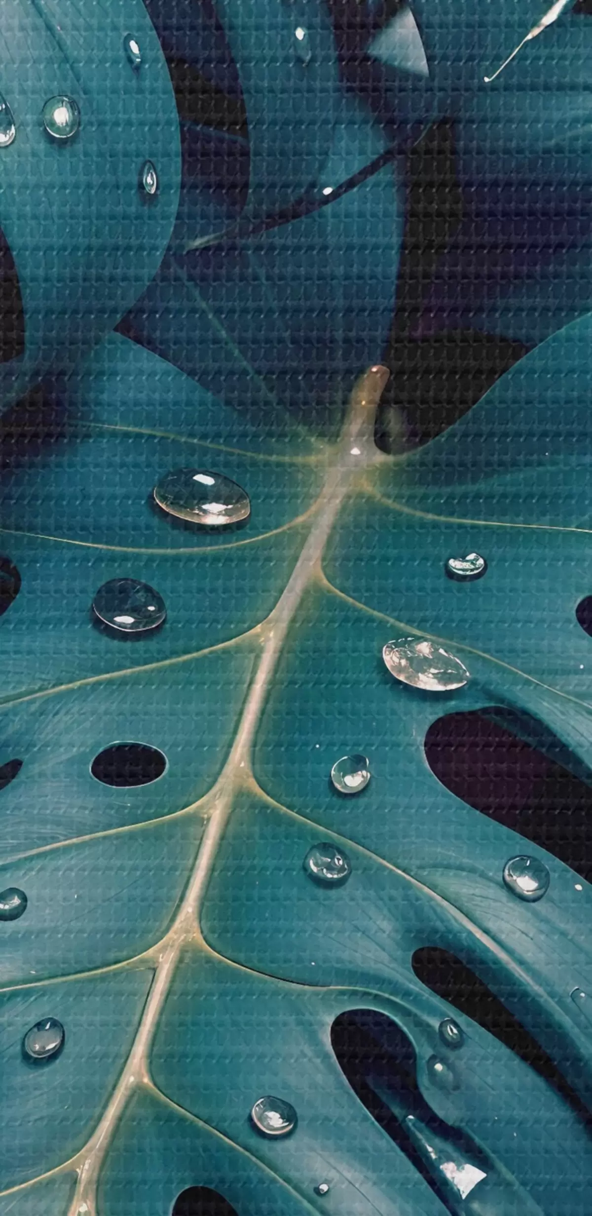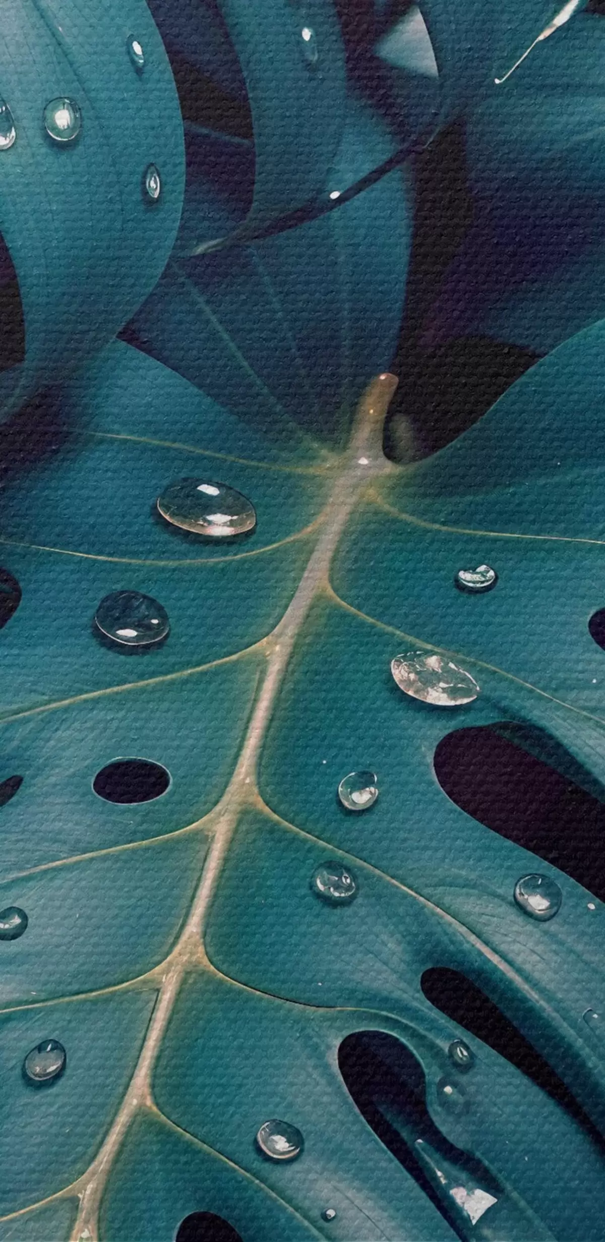 Runde Wandbilder Üppige tropische Monstera-Blätter mit Wassertropfen vor dunklem Hintergrund, ein stimmungsvoller Druck r42233