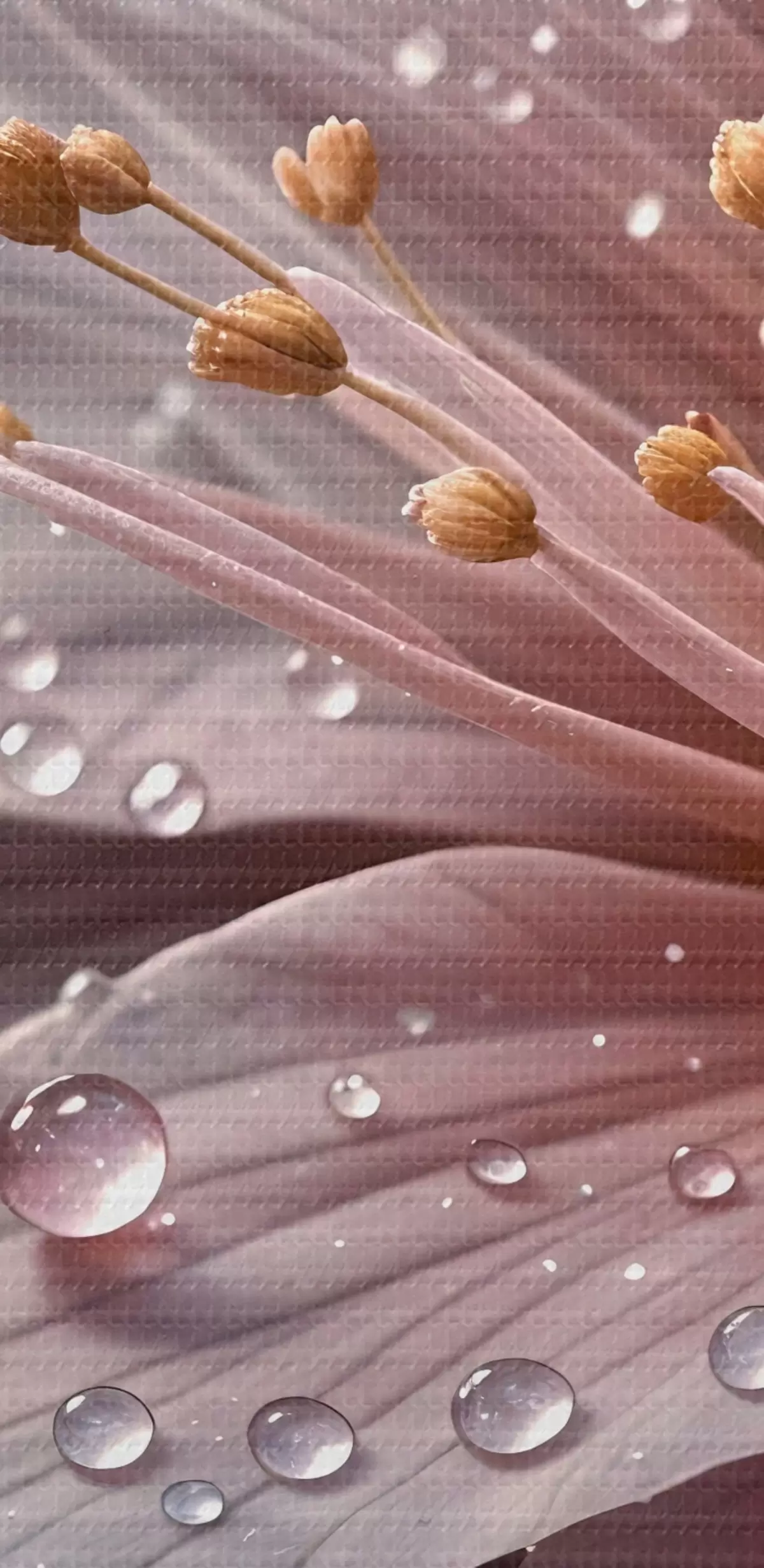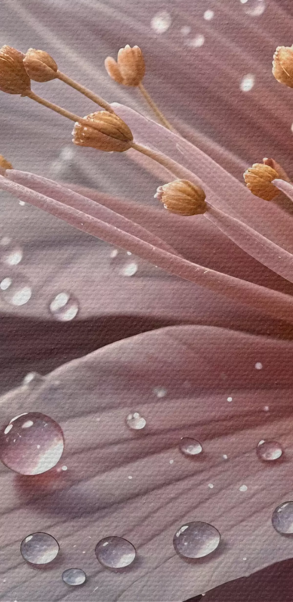 Runde Wandbilder Nahaufnahme einer rosafarbenen Blume mit zarten Blütenblättern, die mit Wassertropfen bedeckt sind, vor einem dunklen Hintergrund r42237