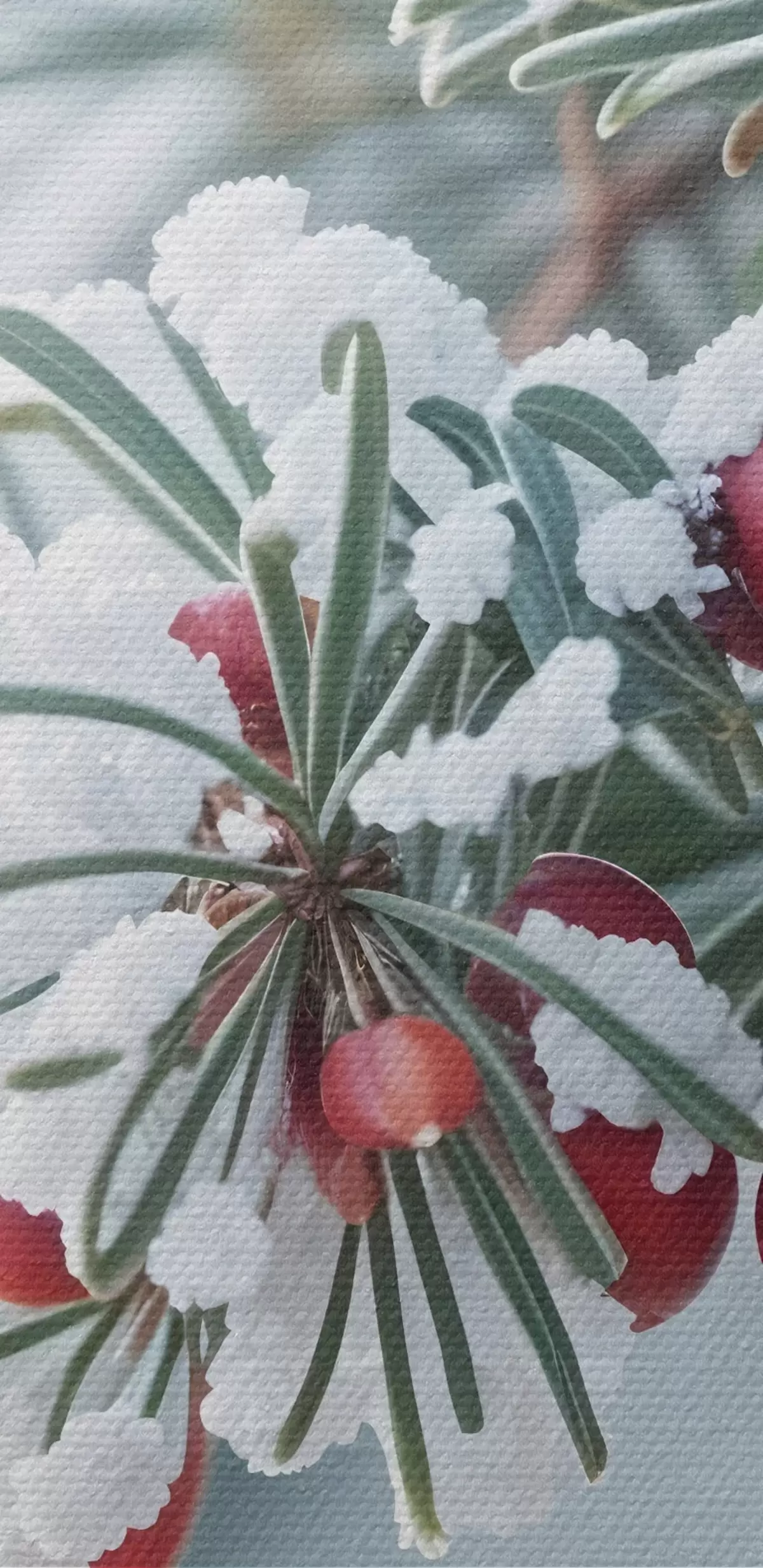 Runde Wandbilder Verschneiter Tannenzweig mit roten Beeren, Winterszene r42238