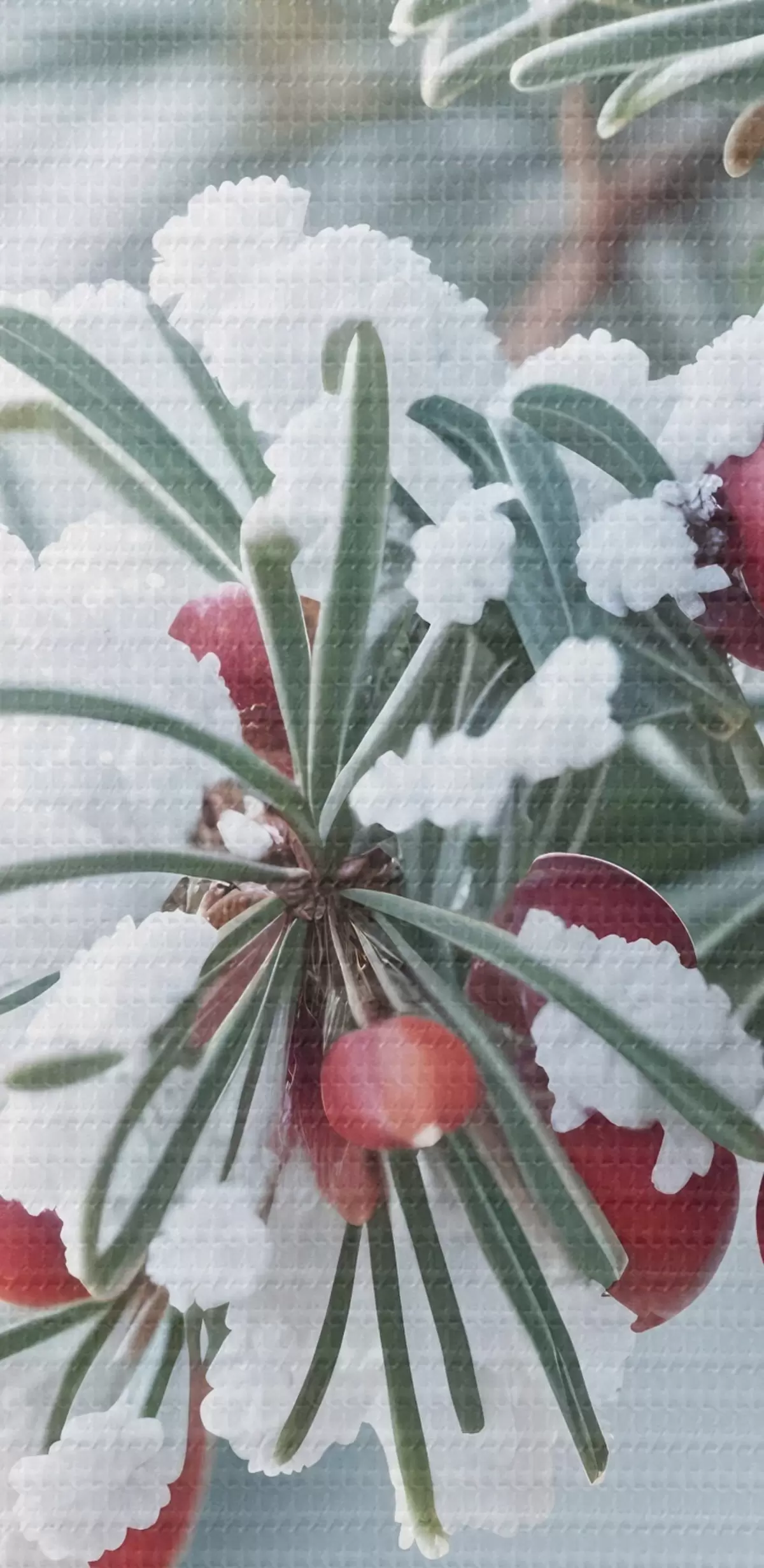 Runde Wandbilder Verschneiter Tannenzweig mit roten Beeren, Winterszene Nr r42238