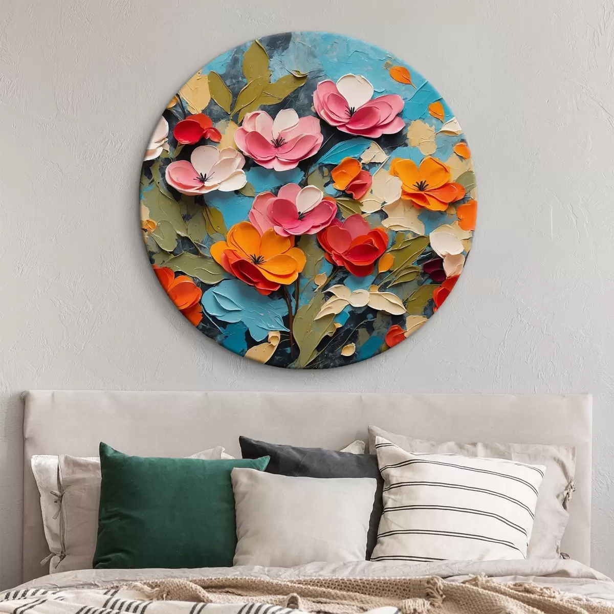 Runde Wandbilder Blumen und Blätter auf blauem Hintergrund r42255
