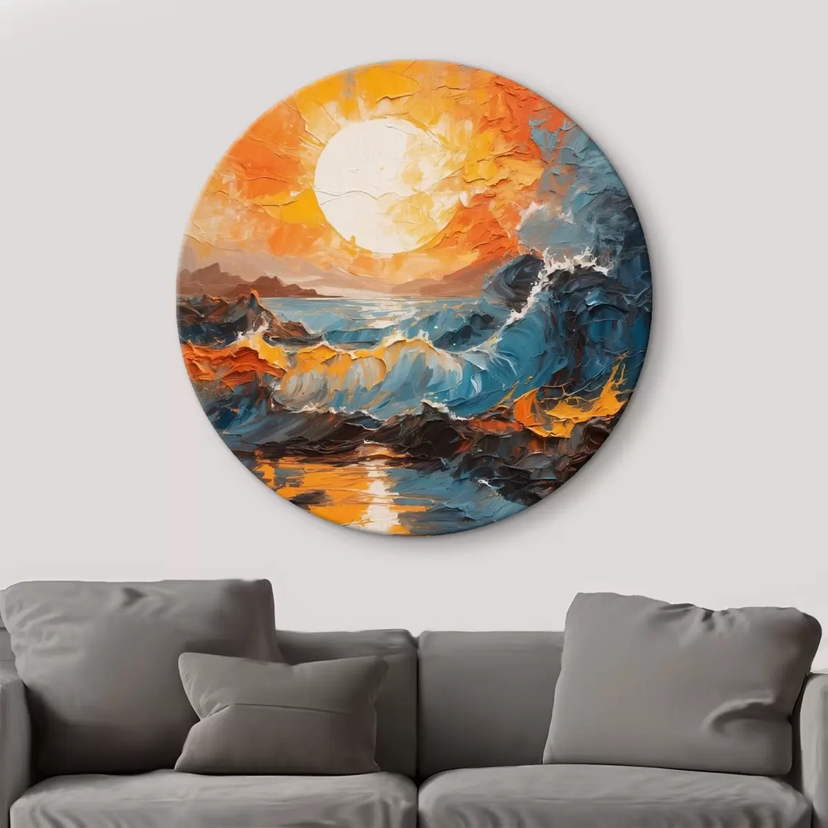 Runde Wandbilder Stürmische See und Sonne im Stil eines Ölgemäldes Nr r42257