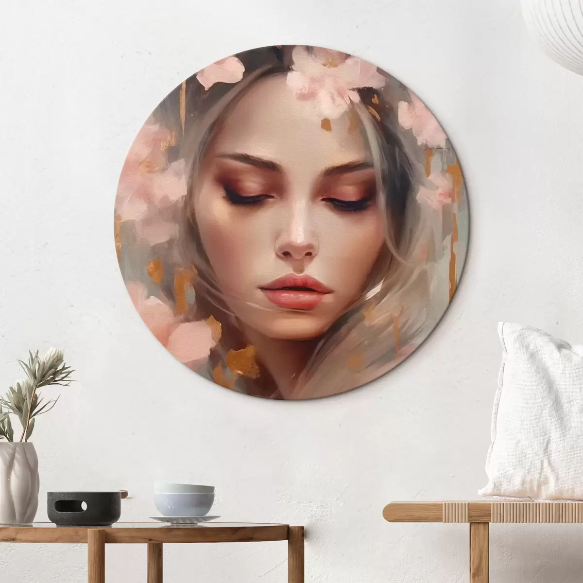 Runde Wandbilder Schönes Mädchen und Blumen Nr r42299