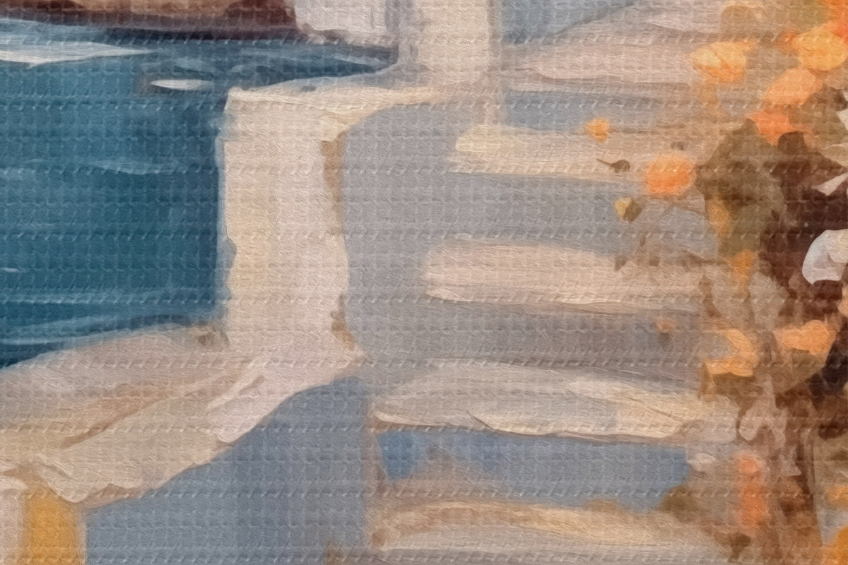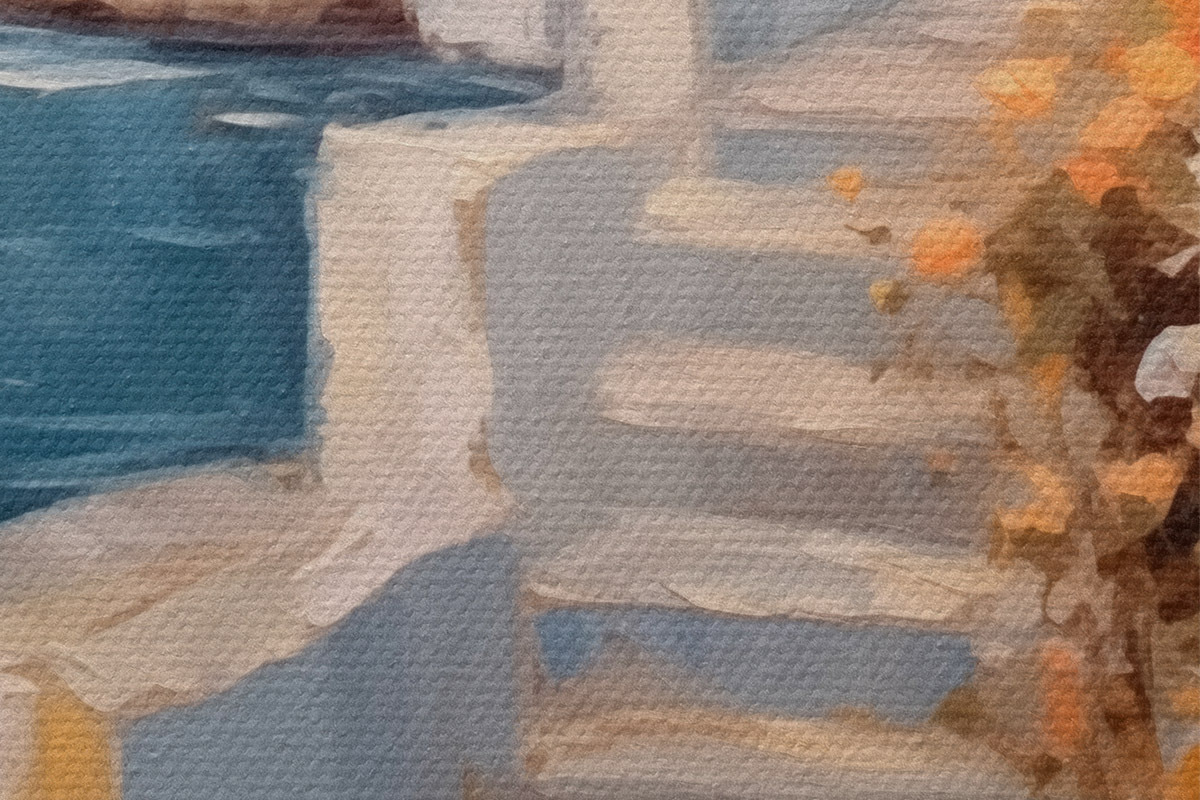Es ist eine billigere Version von Canvas. Es ist haltbarer und feuchtigkeitsbeständiger, aber seine Oberfläche hat nicht so eine ausgeprägte Textur wie Premium Canvas