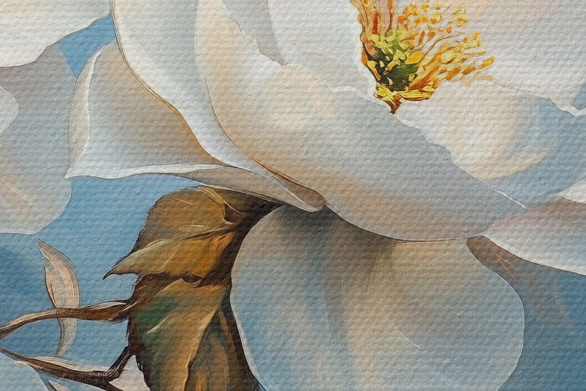 Drei Materialtypen stehen zur Verfügung: Economic Canvas - ein dichtes und haltbares Material für den Digitaldruck, identisch mit Malerleinwand, wasserfeste Oberfläche, realistische Wiedergabe von Details, mittelkörniges Material. Premium Canvas - die Textur ähnelt der einer Malerleinwand (verwobene kleine Fäden). Weiche, detaillierte Wiedergabe des Bildes auf einer matten Oberfläche. Eco-Premium - hochwertiges Gewebe aus 100% Baumwolle. Dank der natürlichen Baumwollfasern ist das Material langlebig und verschleißfest. Hervorragende Farbwiedergabe und Detailtreue.
