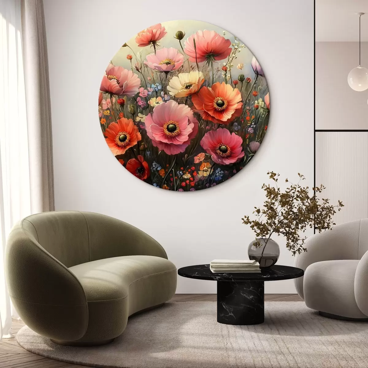 Runde Wandbilder Rote Blumen Nr r42325