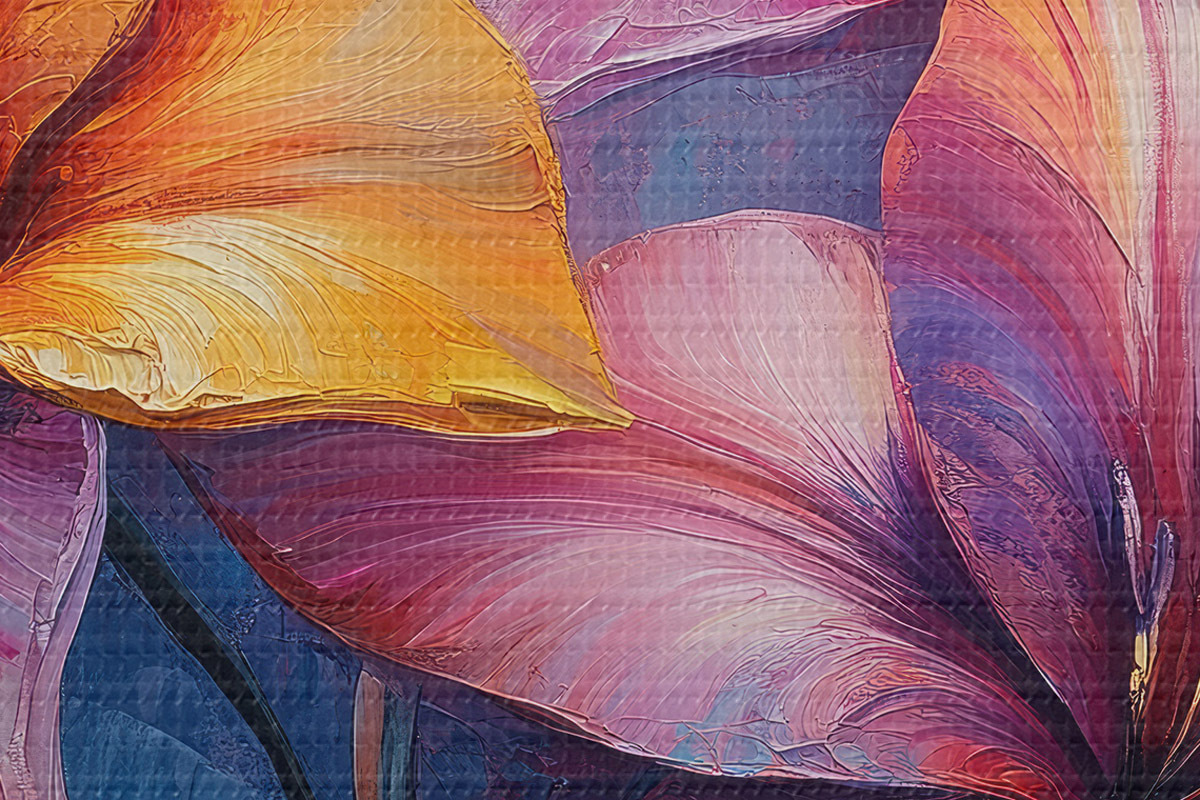 Drei Materialtypen stehen zur Verfügung: Economic Canvas - ein dichtes und haltbares Material für den Digitaldruck, identisch mit Malerleinwand, wasserfeste Oberfläche, realistische Wiedergabe von Details, mittelkörniges Material. Premium Canvas - die Textur ähnelt der einer Malerleinwand (verwobene kleine Fäden). Weiche, detaillierte Wiedergabe des Bildes auf einer matten Oberfläche. Eco-Premium - hochwertiges Gewebe aus 100% Baumwolle. Dank der natürlichen Baumwollfasern ist das Material langlebig und verschleißfest. Hervorragende Farbwiedergabe und Detailtreue.