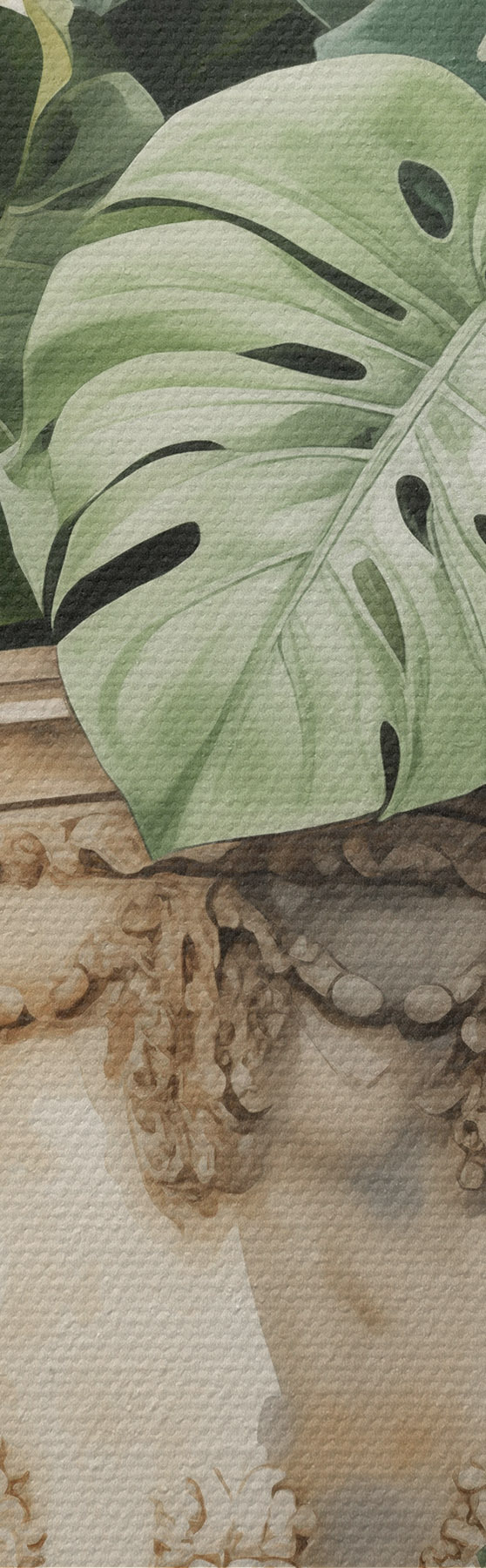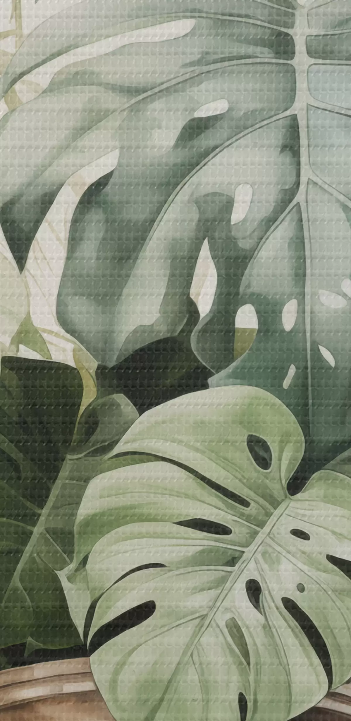 Runde Wandbilder Tropische Monstera Blätter auf einer Säule Nachahmung Aquarell Nr r42351