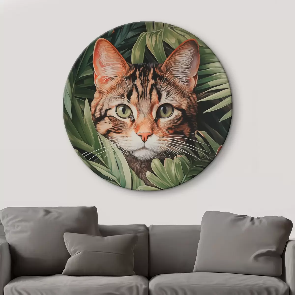 Runde Wandbilder Katze in tropischen Blättern Nr r42354