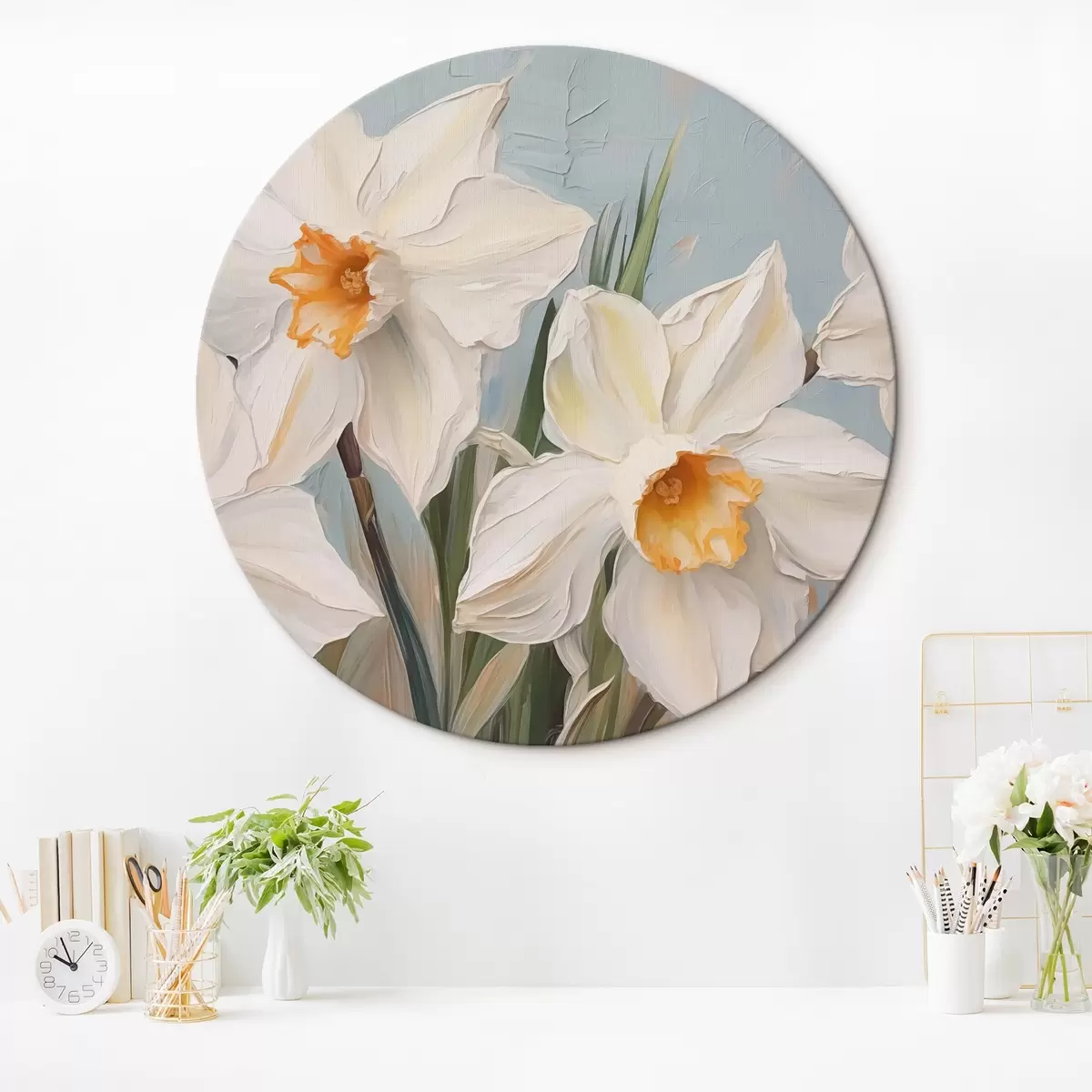 Runde Wandbilder Weiße Osterglocken große Nachahmung der Malerei r42355