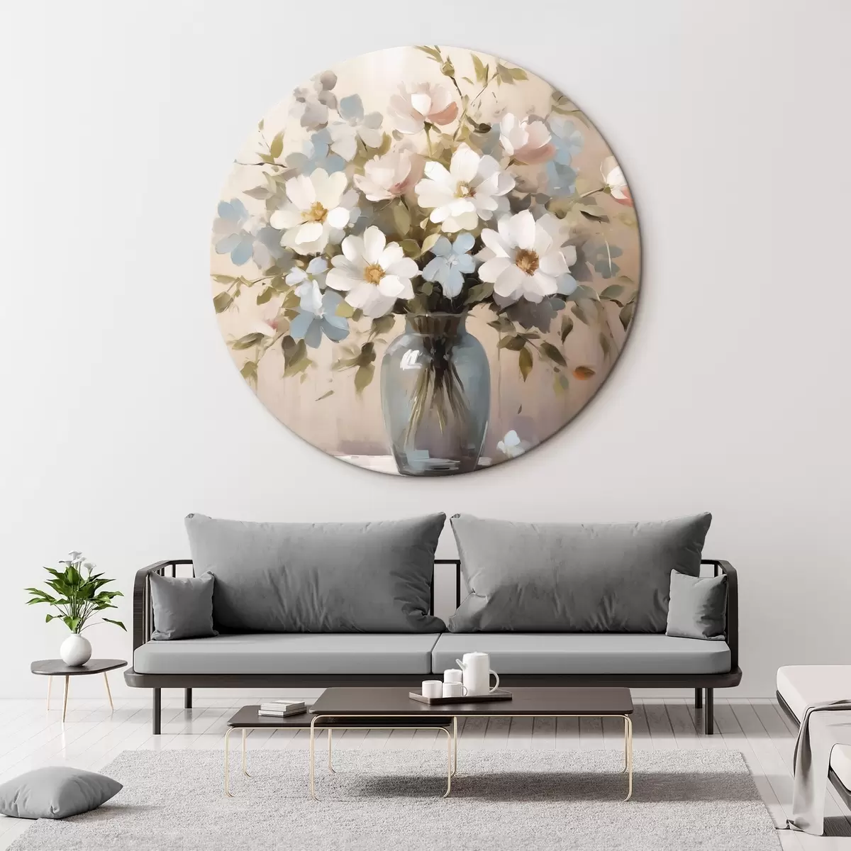 Runde Wandbilder Blumenstrauß und Zweige in einer Vase Nachahmung der Malerei r42356