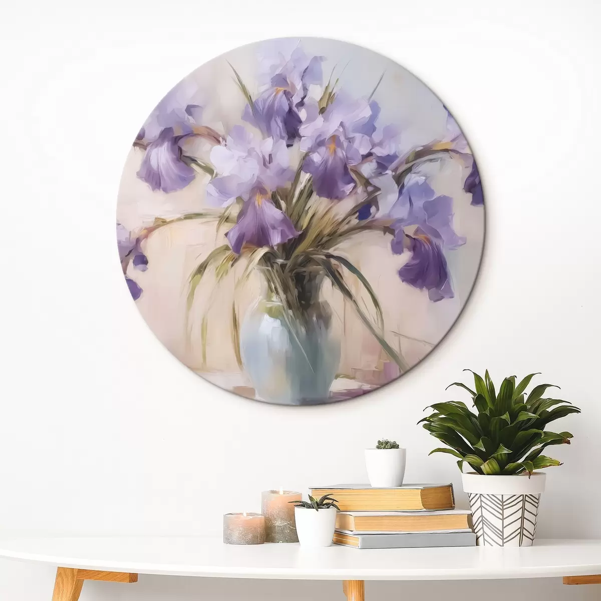 Runde Wandbilder Schwertlilien in einer Vase Nachahmung der Malerei r42357