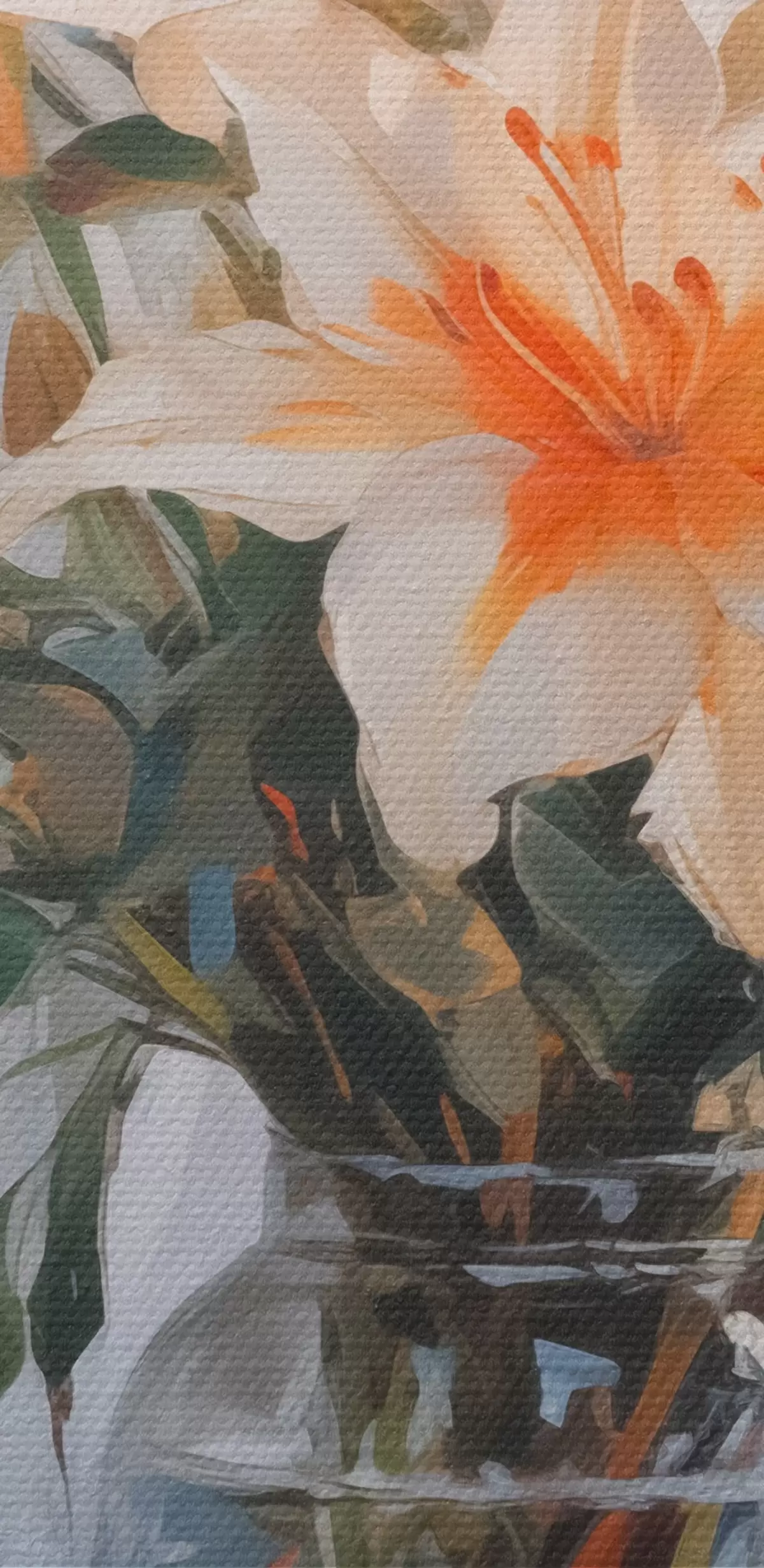 Drei Materialtypen stehen zur Verfügung: Economic Canvas - ein dichtes und haltbares Material für den Digitaldruck, identisch mit Malerleinwand, wasserfeste Oberfläche, realistische Wiedergabe von Details, mittelkörniges Material. Premium Canvas - die Textur ähnelt der einer Malerleinwand (verwobene kleine Fäden). Weiche, detaillierte Wiedergabe des Bildes auf einer matten Oberfläche. Eco-Premium - hochwertiges Gewebe aus 100% Baumwolle. Dank der natürlichen Baumwollfasern ist das Material langlebig und verschleißfest. Hervorragende Farbwiedergabe und Detailtreue.