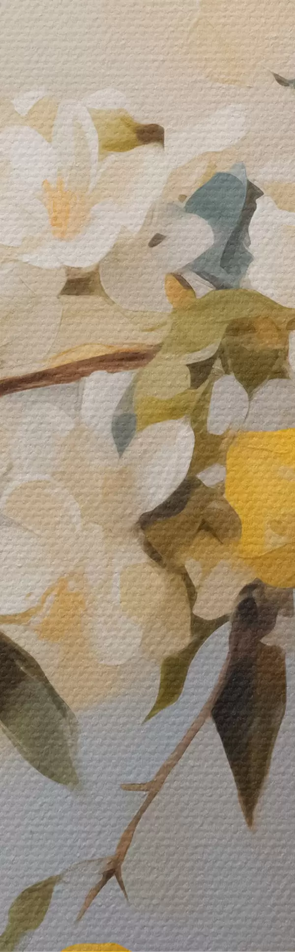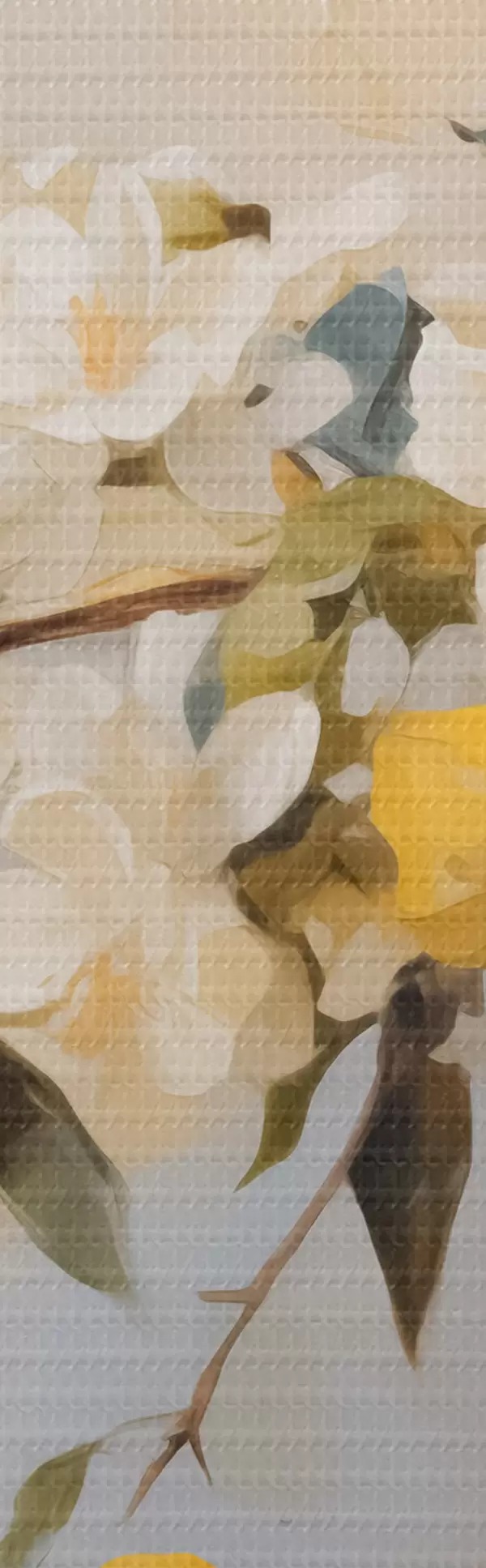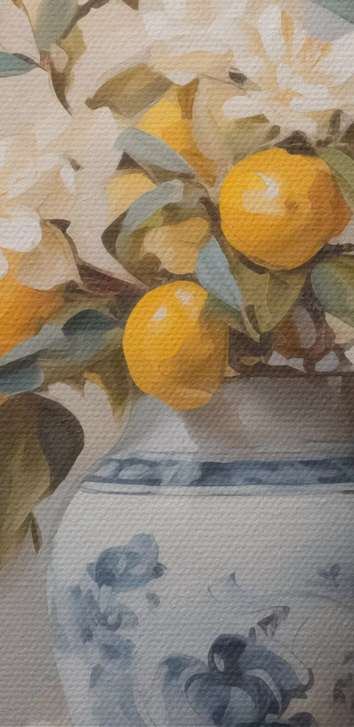 Runde Wandbilder Vase mit Zweigen von weißen Blumen und Zitronenimitation Malerei r42360