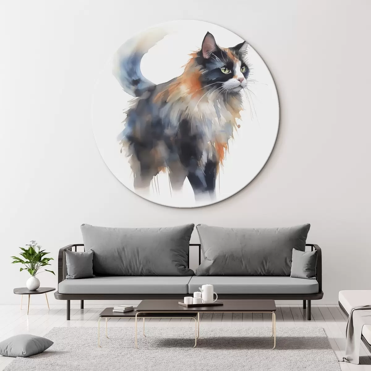 Runde Wandbilder Katze Nachahmung eines verschwommenen Aquarells Nr r42368
