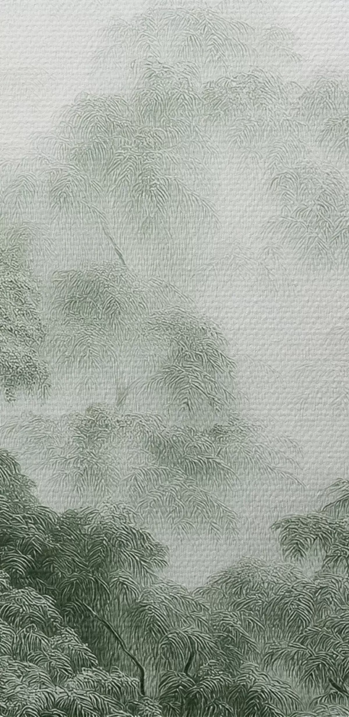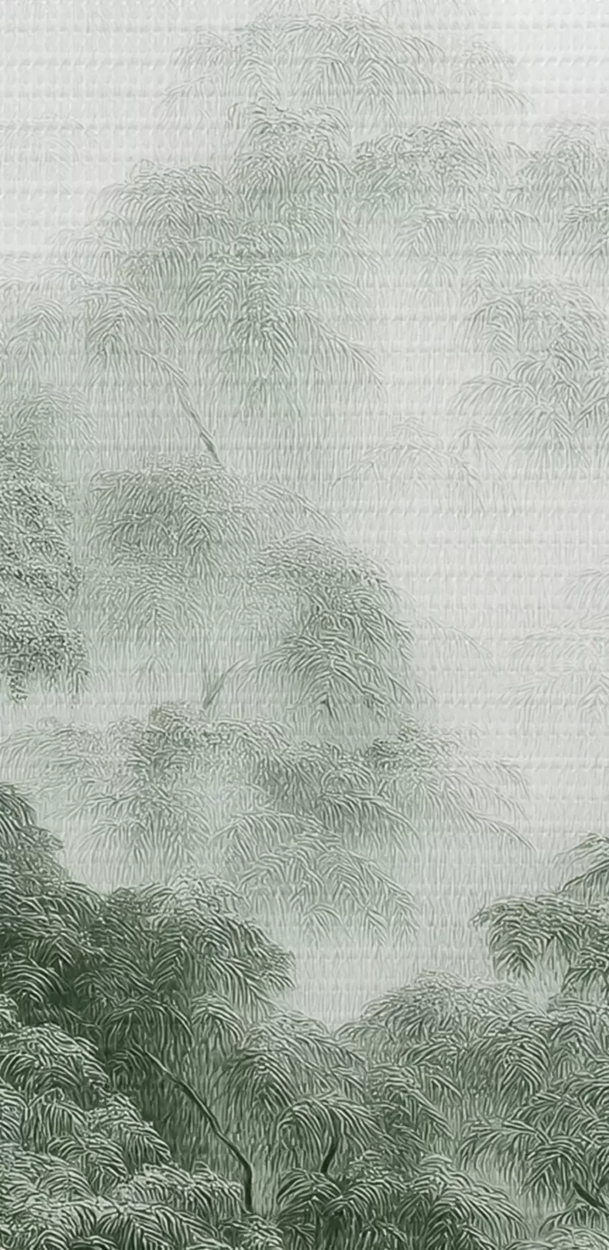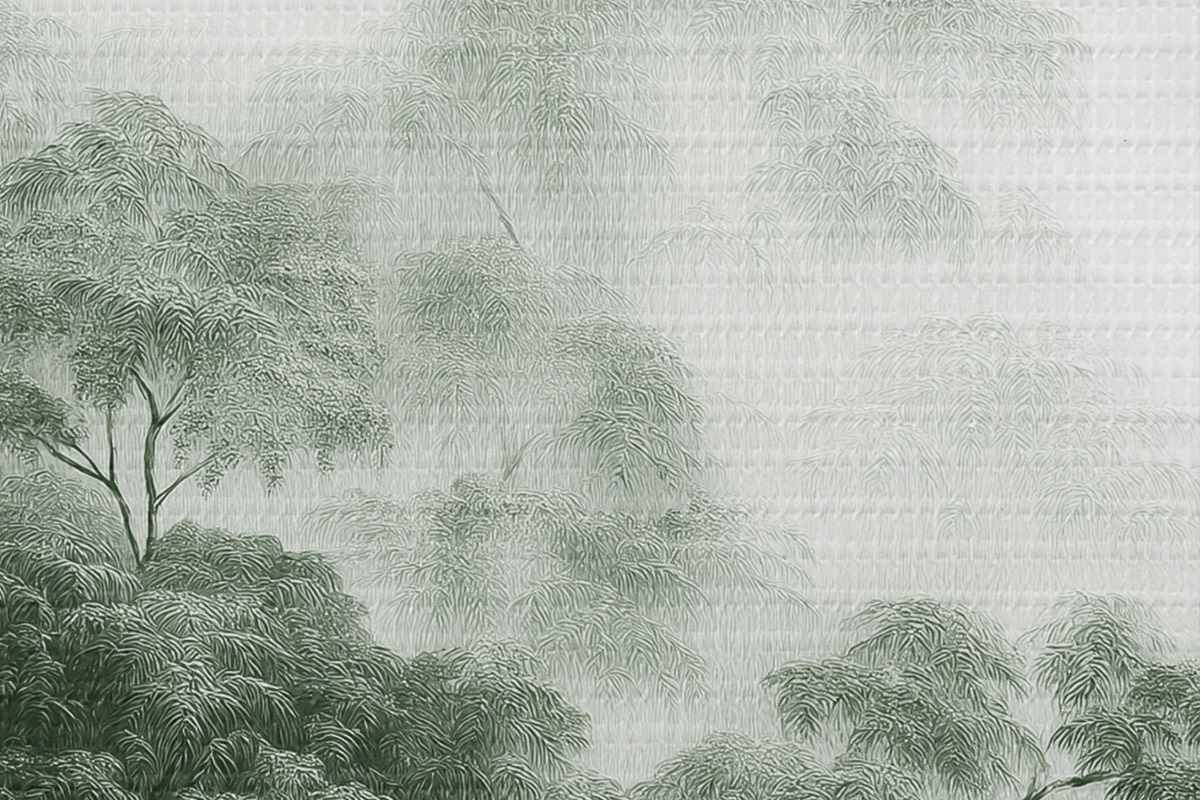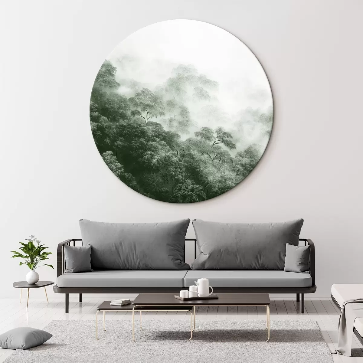 Runde Wandbilder Tropischer Wald im Nebel, Palmen, grüne Farben Nr r42371