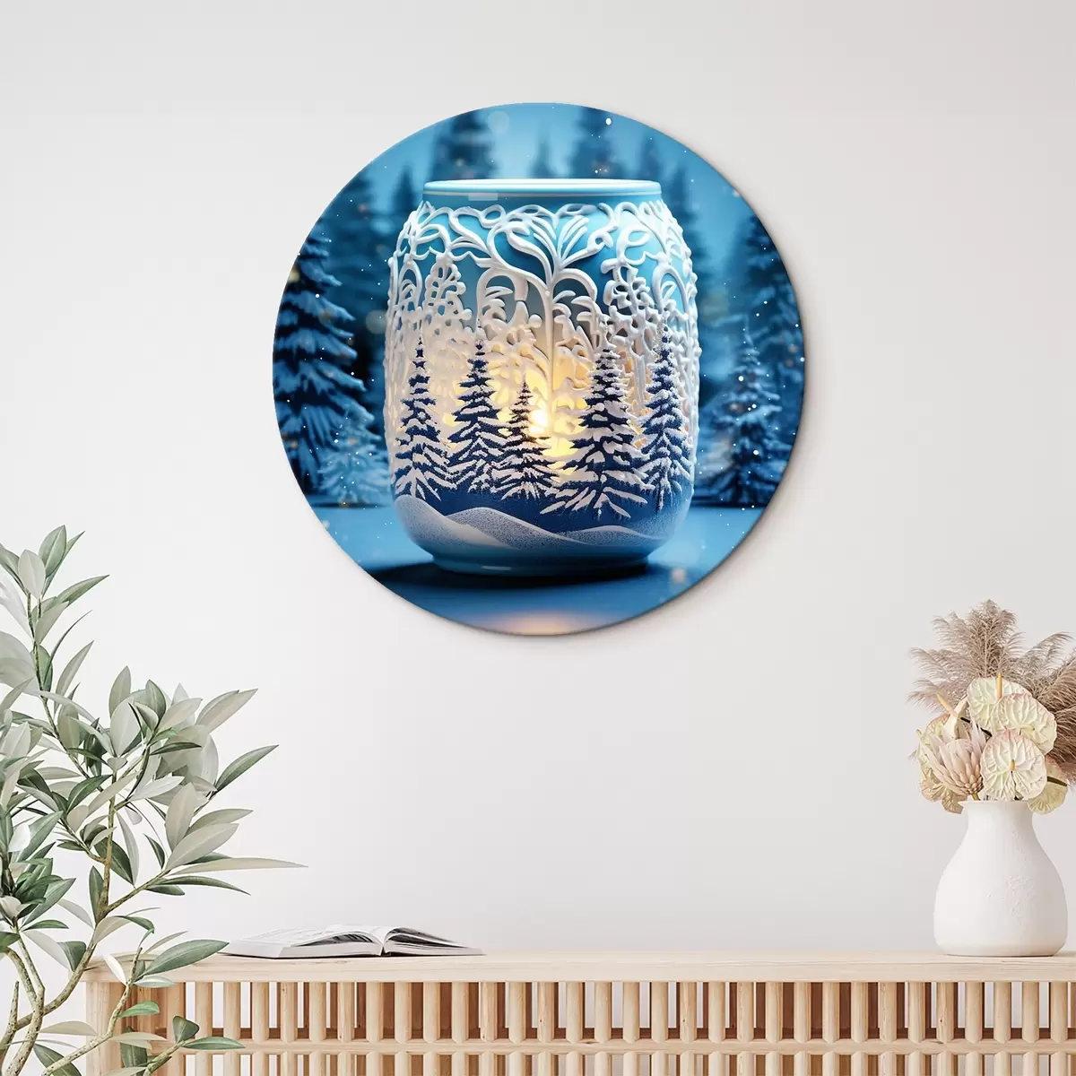 Runde Wandbilder Kerze vor der Kulisse einer Winterlandschaft Nr r42380