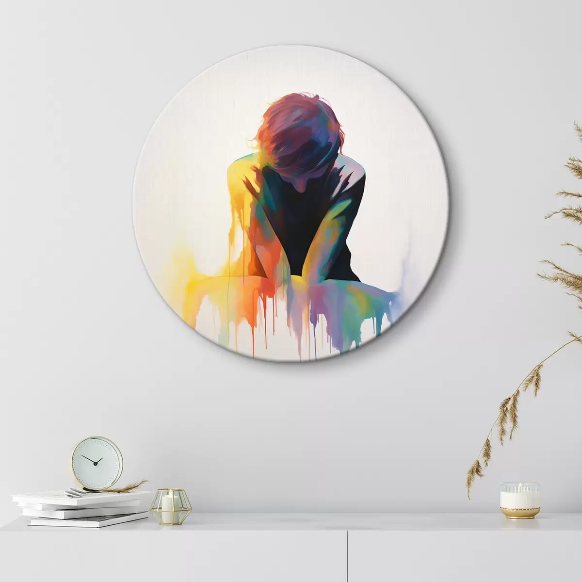 Runde Wandbilder Silhouette eines Mannes mit Farben Nr r42381