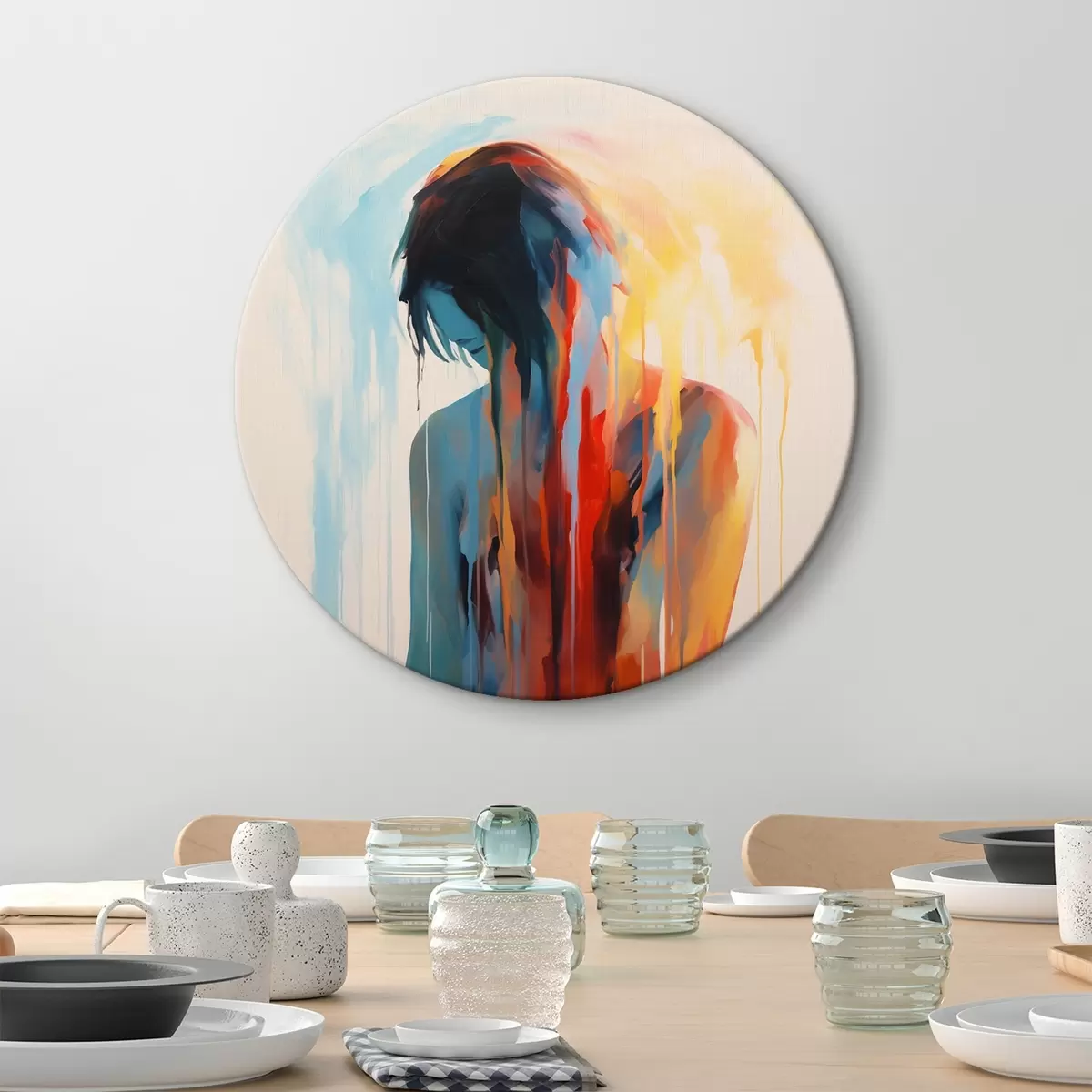 Runde Wandbilder Silhouette eines Mädchens mit Farben Nr r42382