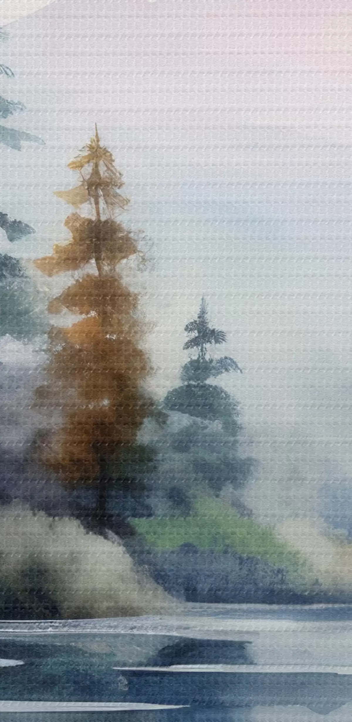 Runde Wandbilder Wald im Nebel vor der Kulisse eines Sees r42384