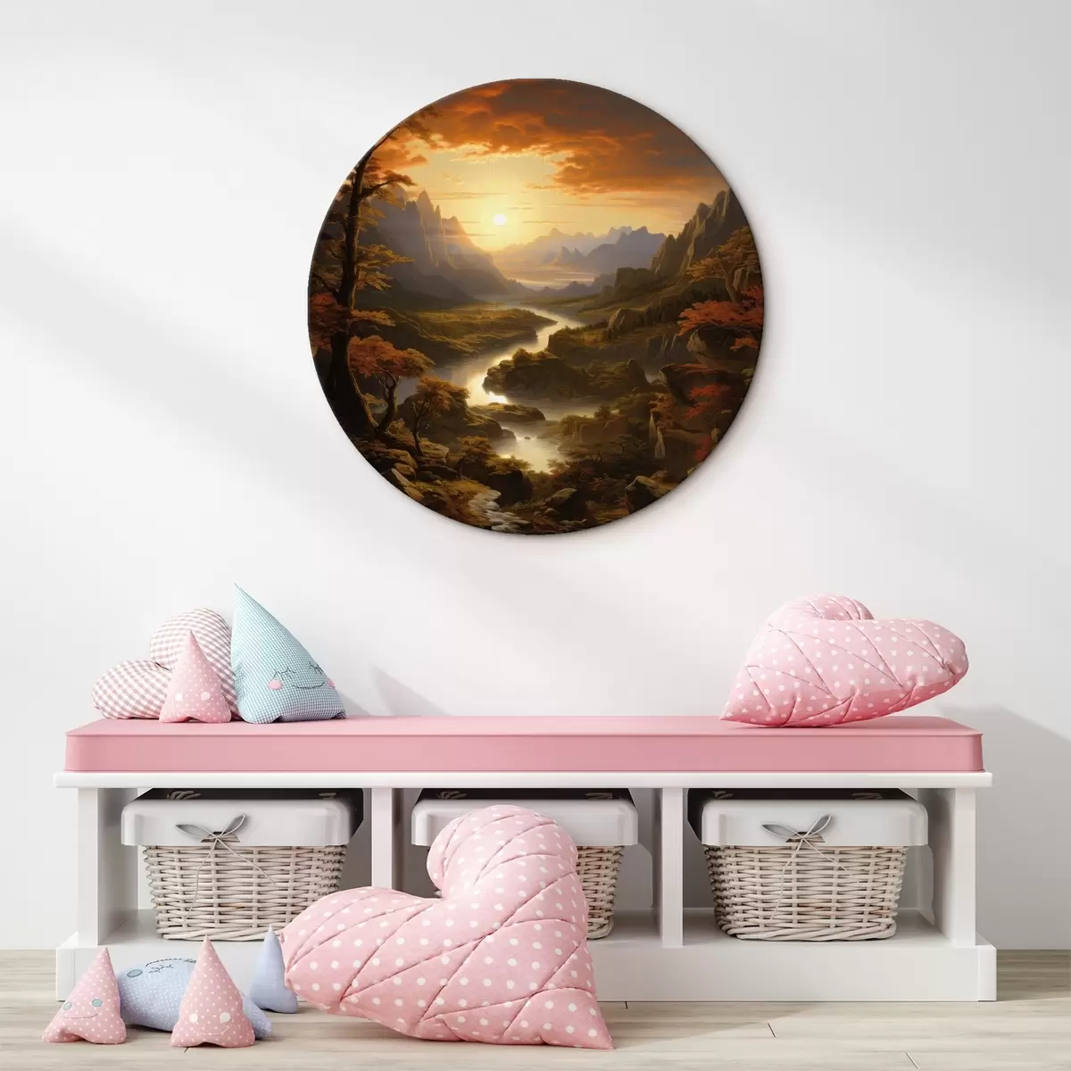 Runde Wandbilder Morgendämmerung in den Bergen r42385