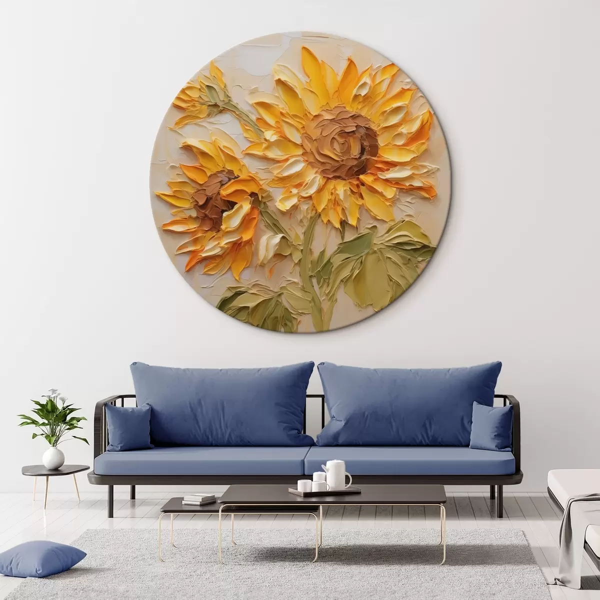 Runde Wandbilder Sonnenblumen Nachahmung von Pinselstrichen Nr r42411