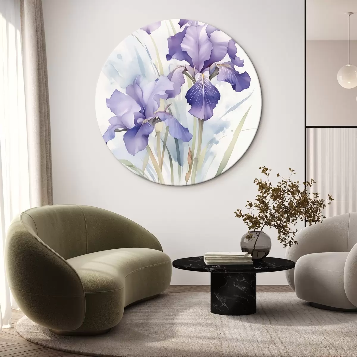 Runde Wandbilder Schwertlilien Nachahmung von Aquarell r42414