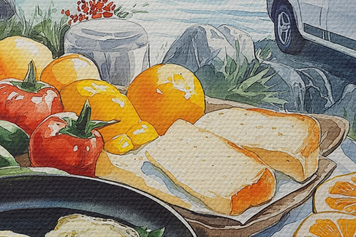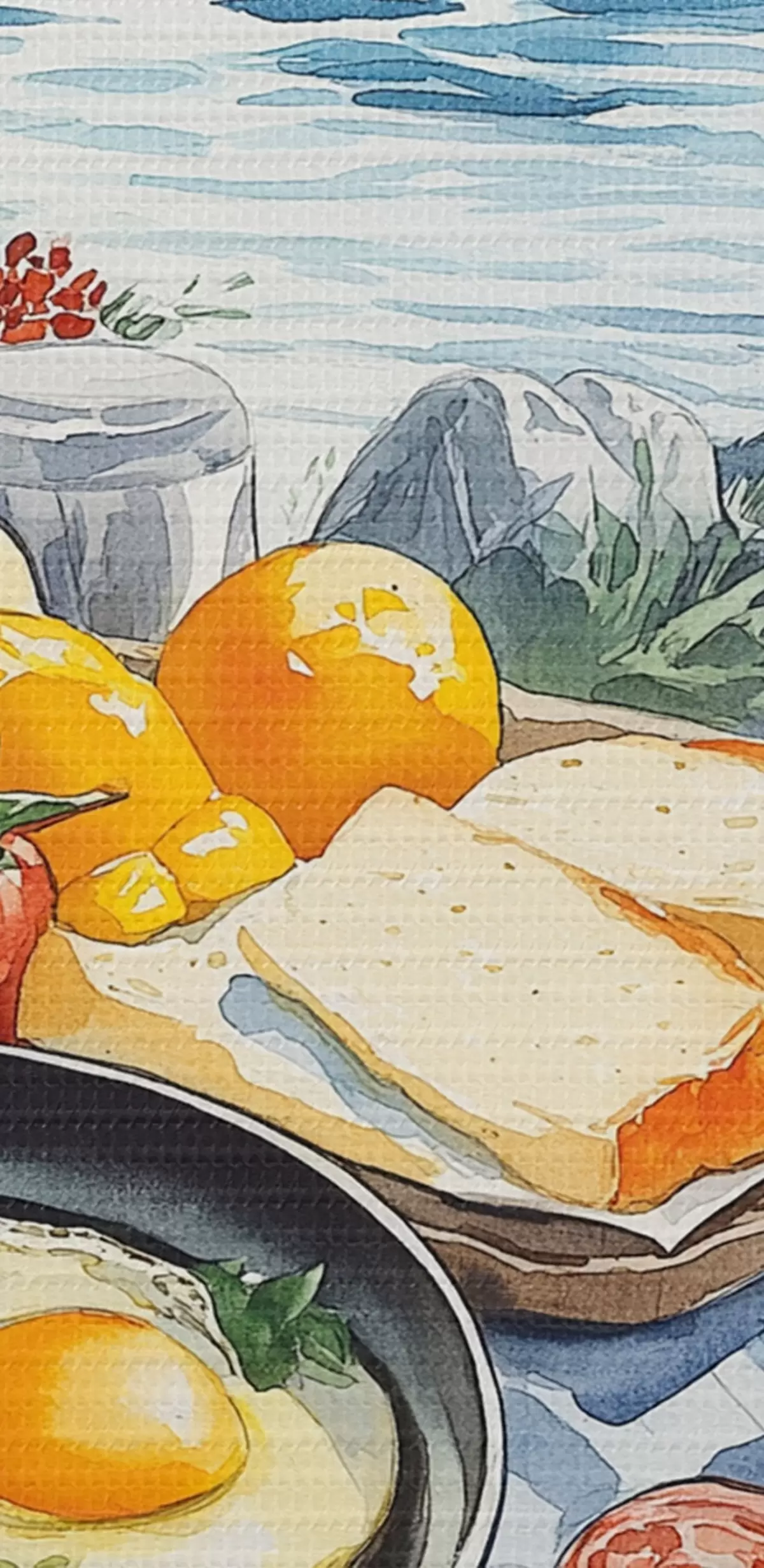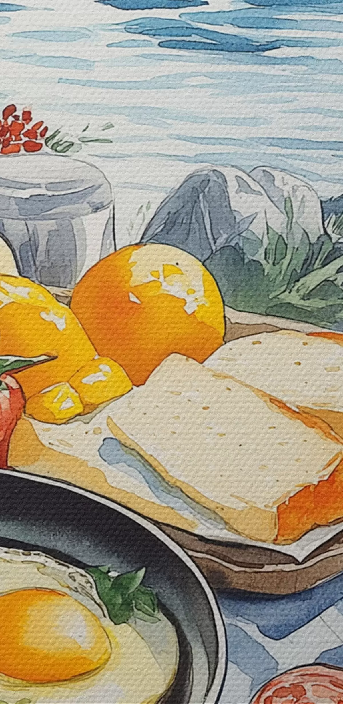 Runde Wandbilder Reisen, Leben im Freien, Aquarellstil, Norwegen, Frühstück r42430
