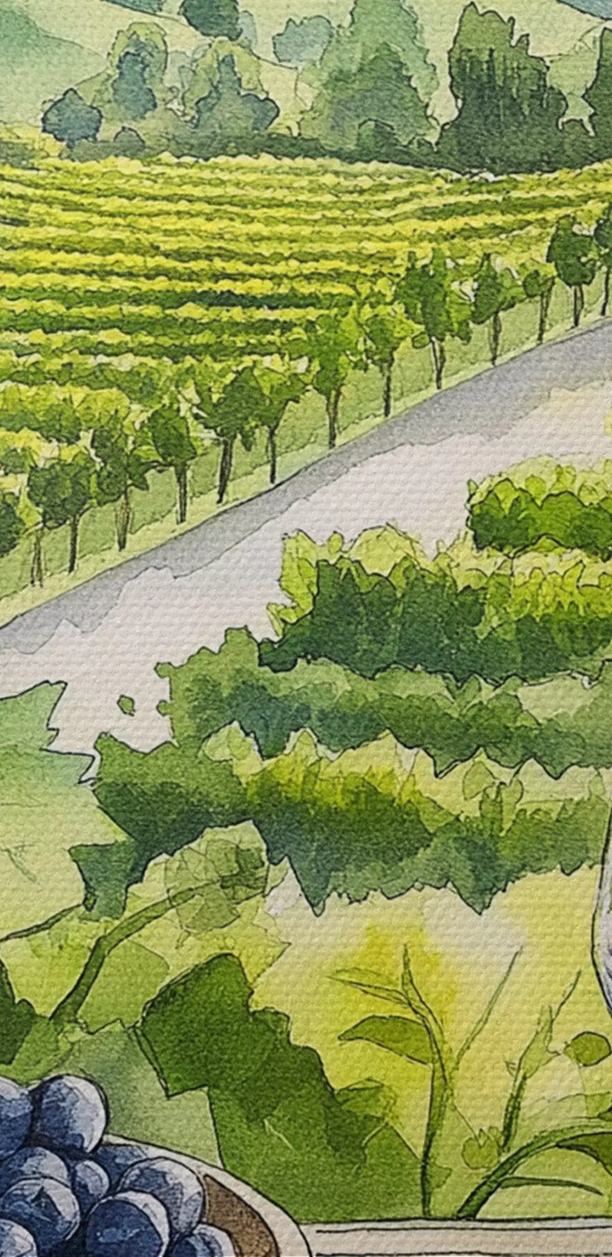 Runde Wandbilder Gpape Höfe, Landschaften im Aquarellstil, Weingläser r42444