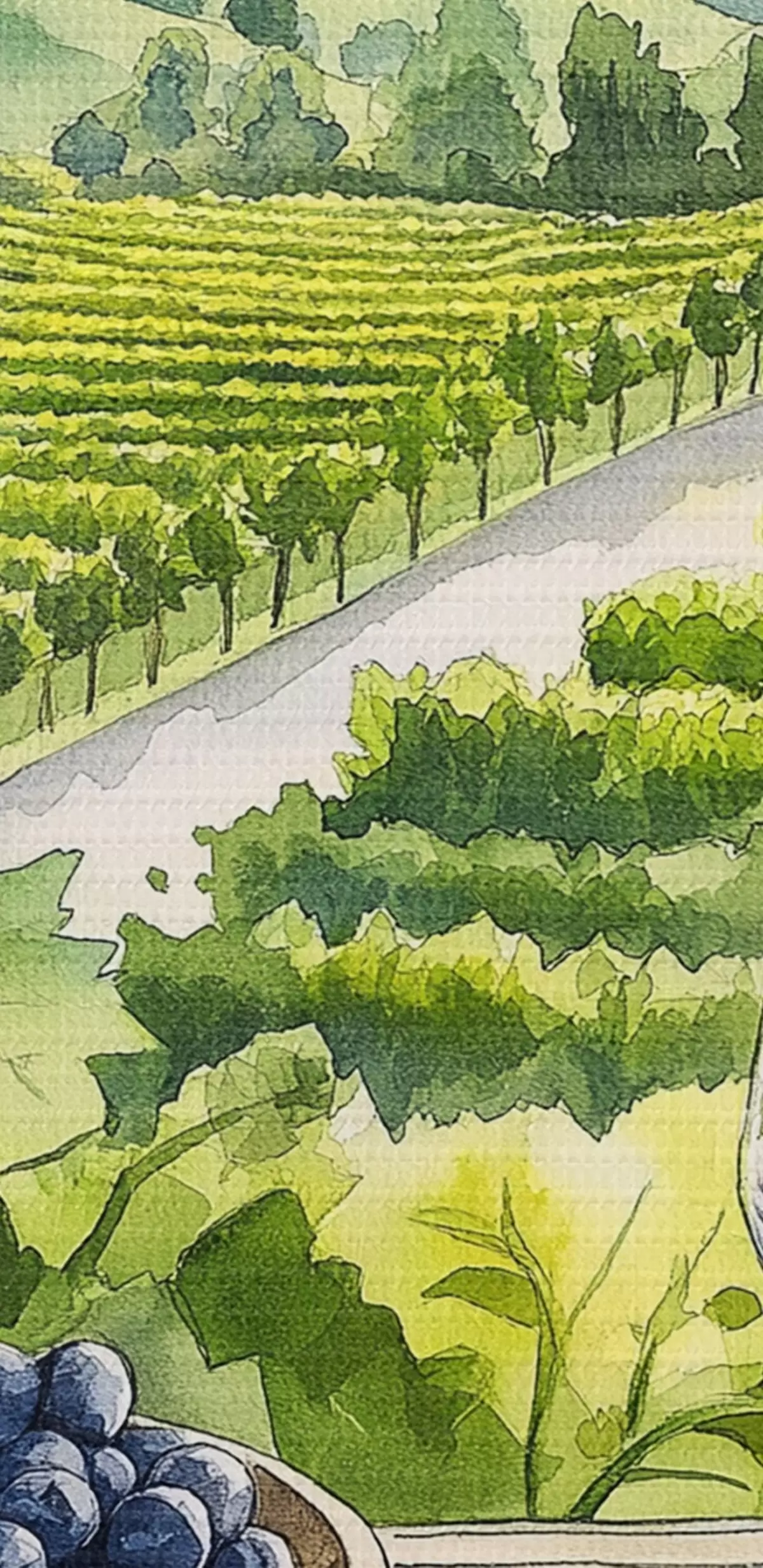 Runde Wandbilder Gpape Höfe, Landschaften im Aquarellstil, Weingläser Nr r42444