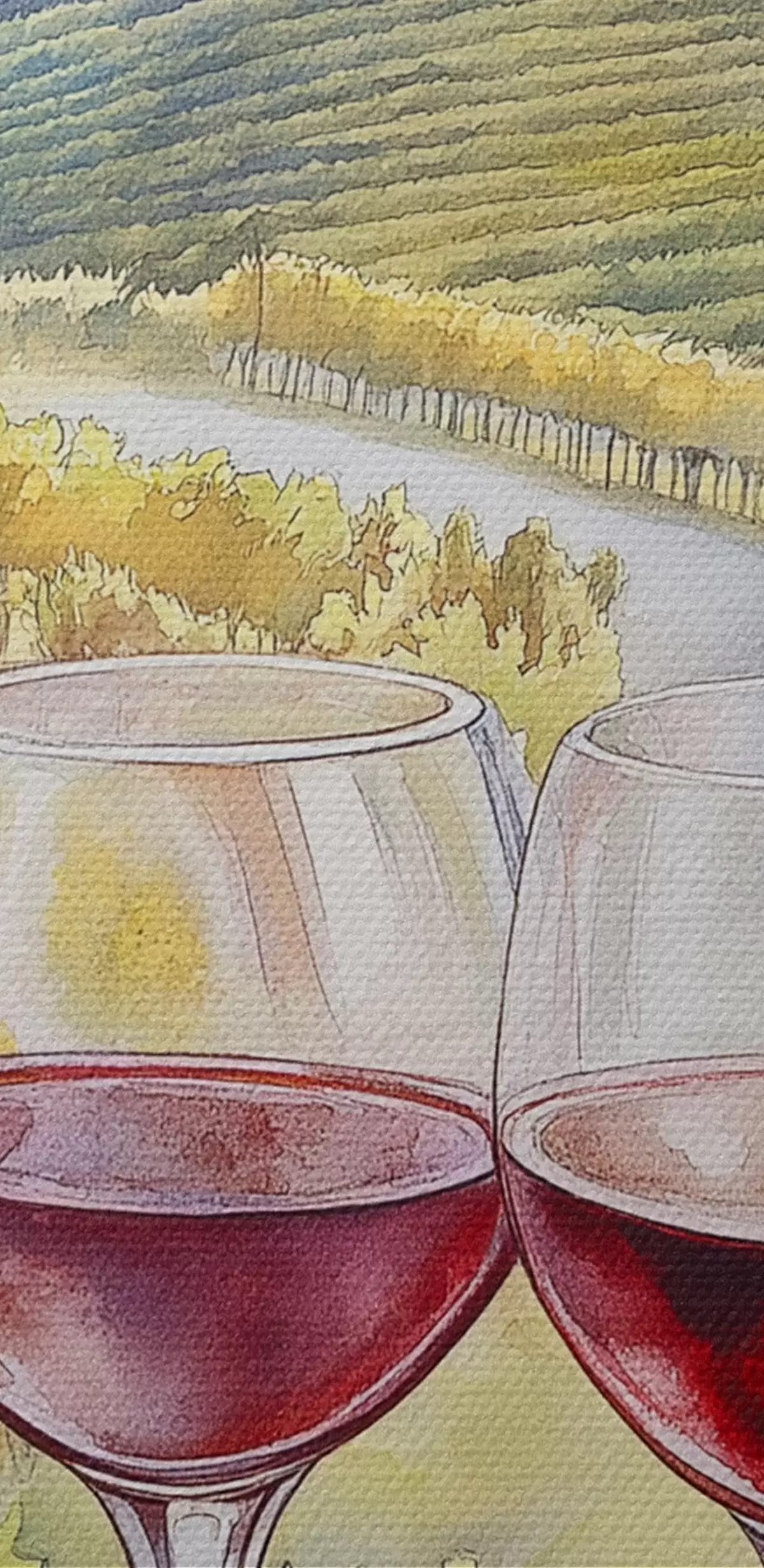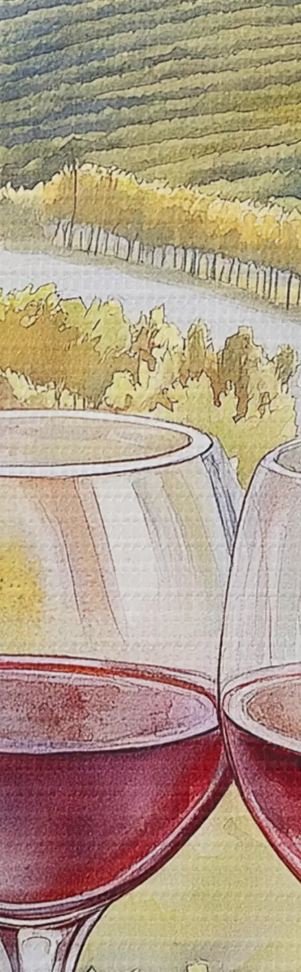 Runde Wandbilder Sonnenuntergang in der Toskana, Weingut, alte Architektur, Aquarellstil, Italien Nr r42446