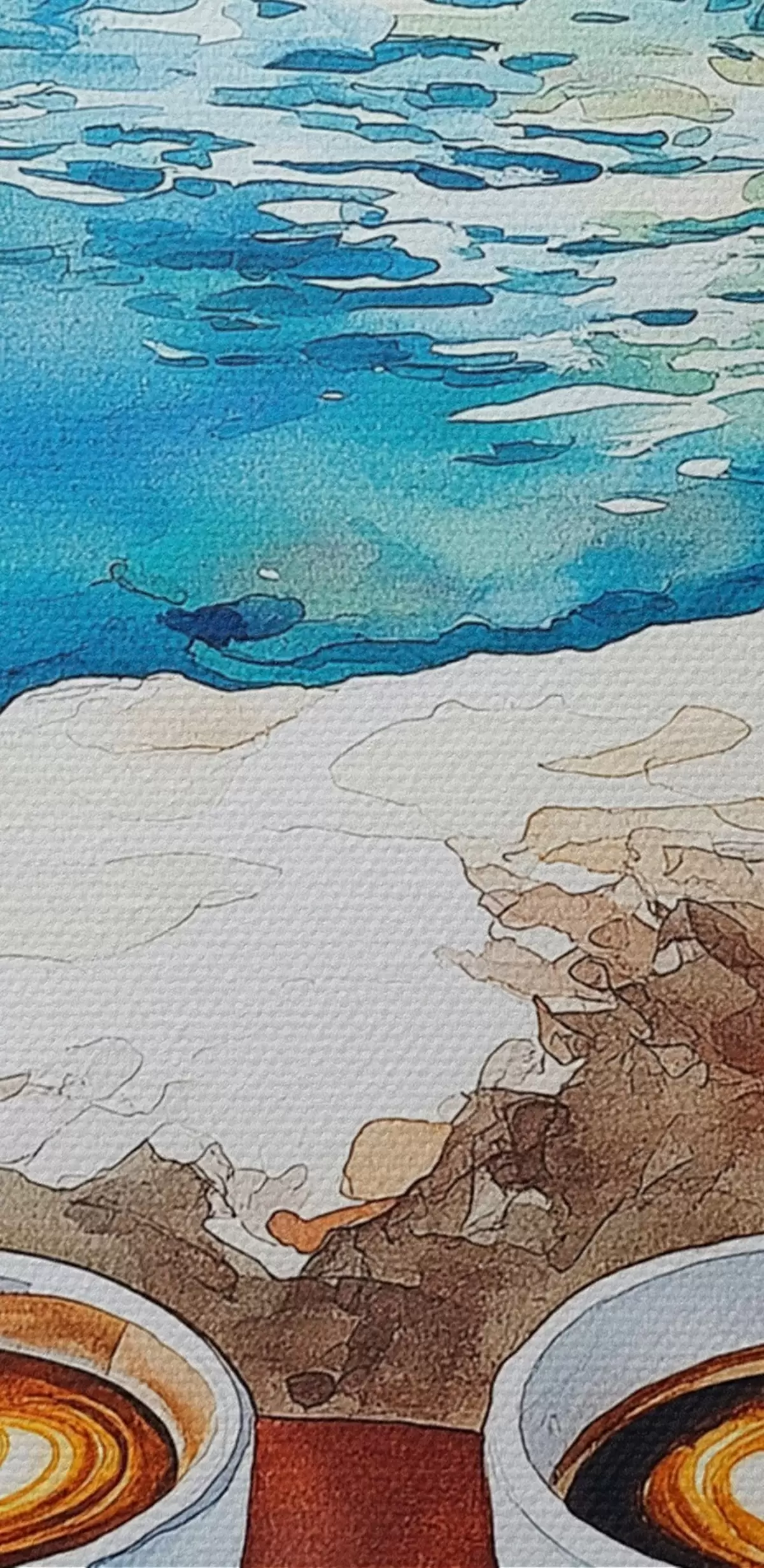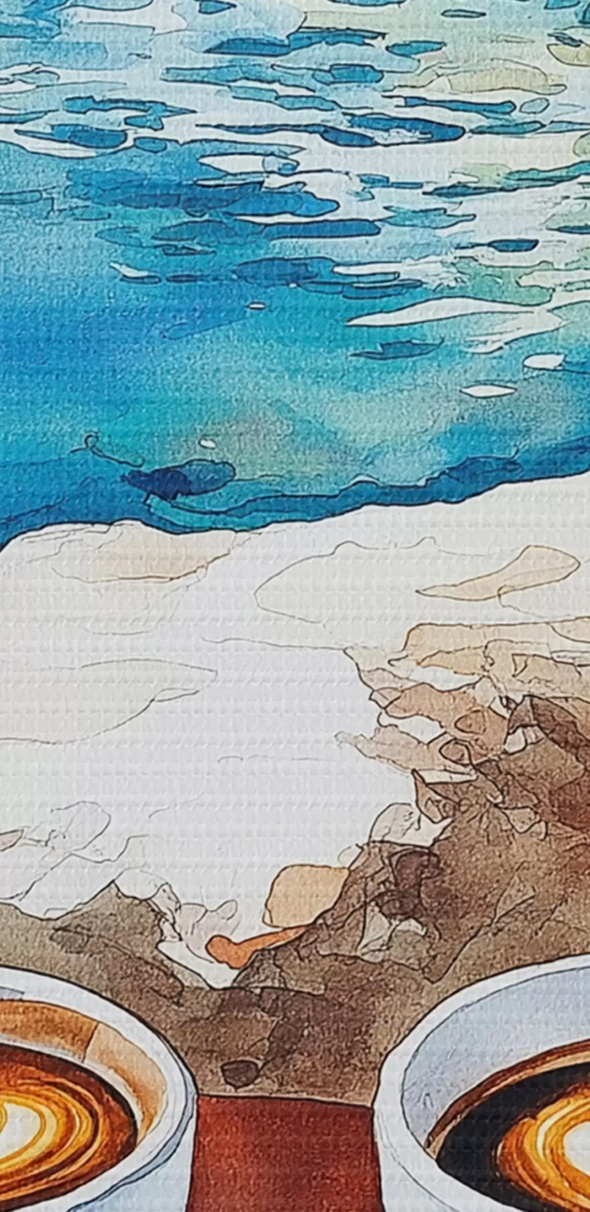 Runde Wandbilder Aquarell Seeseite mit Tassen Kaffee, Sommer r42449