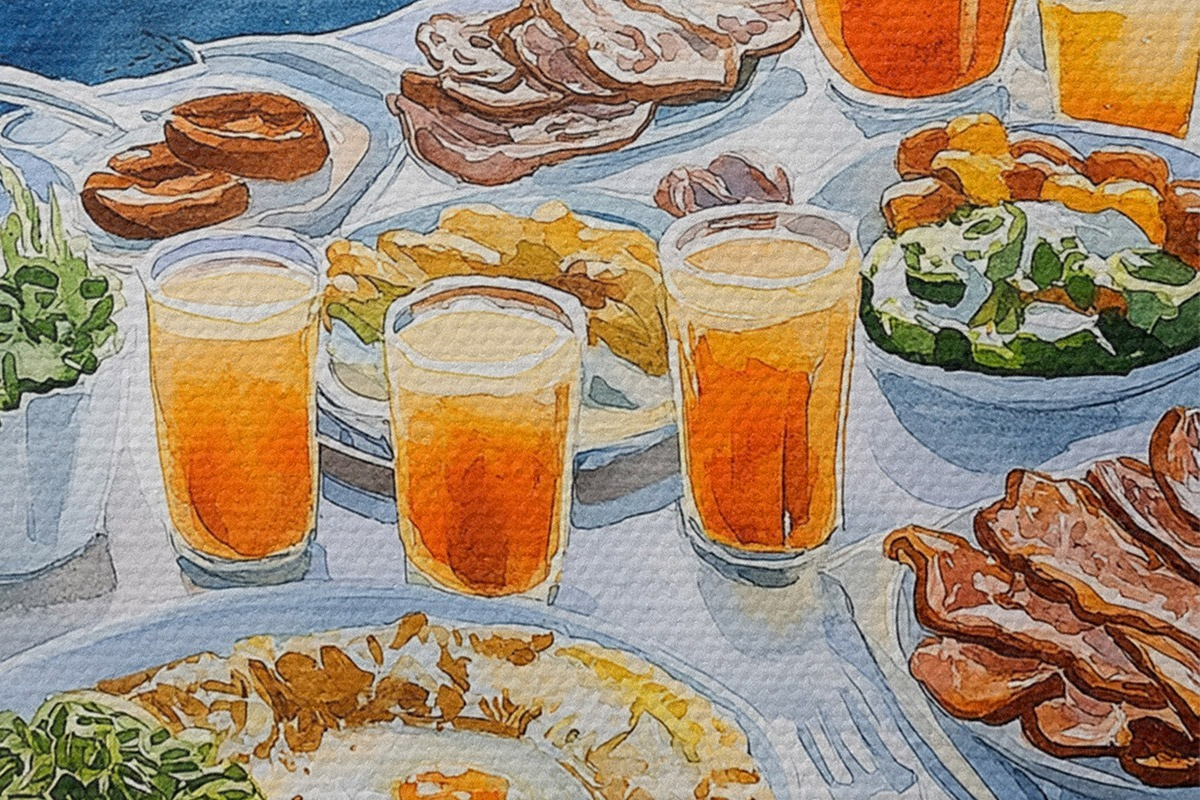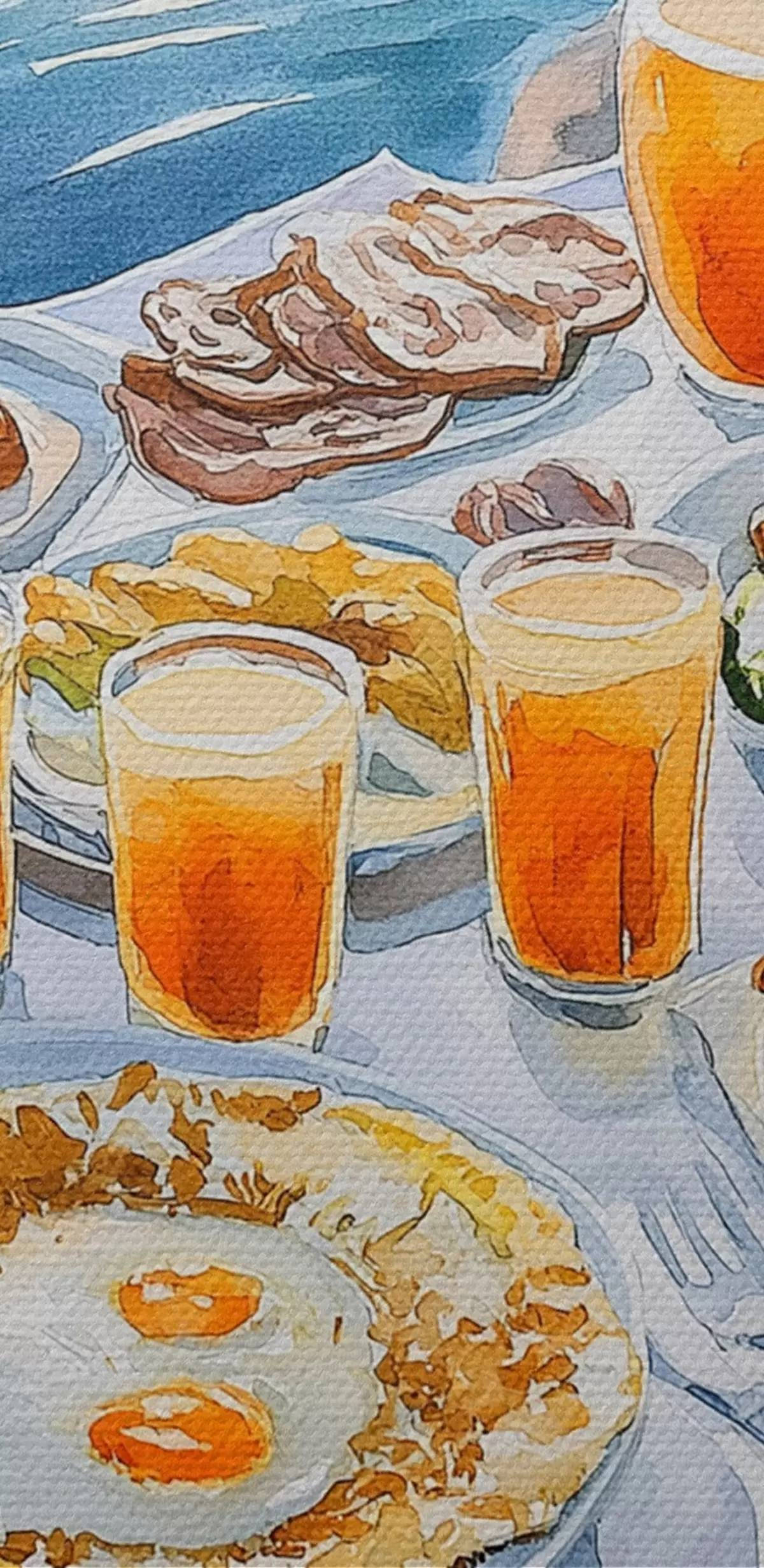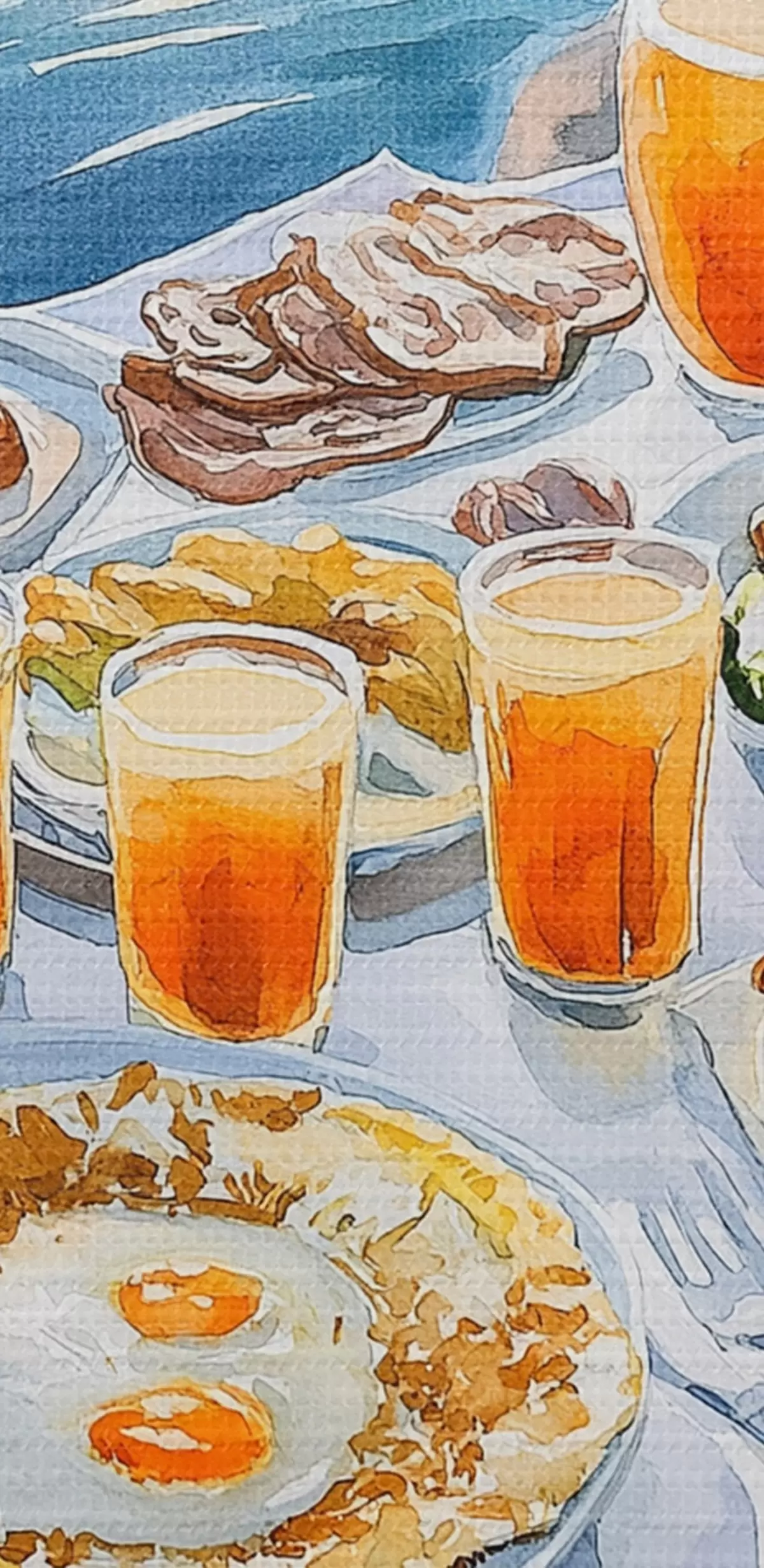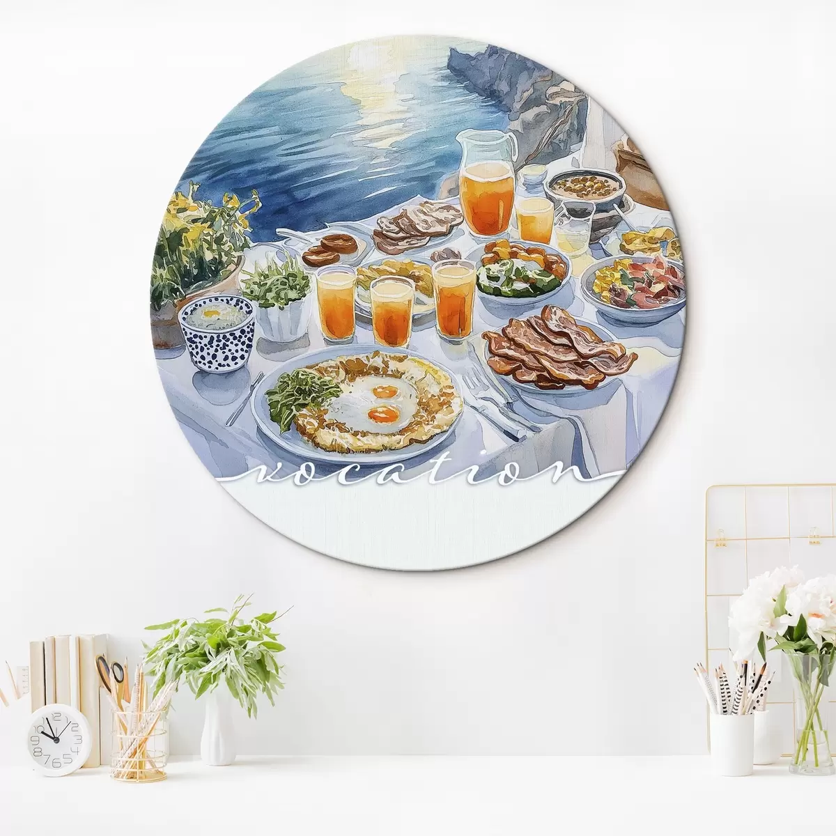 Runde Wandbilder Romantische Berufung in Griechenland, Aquarellstil, Frühstück, Sonnenaufgang r42453