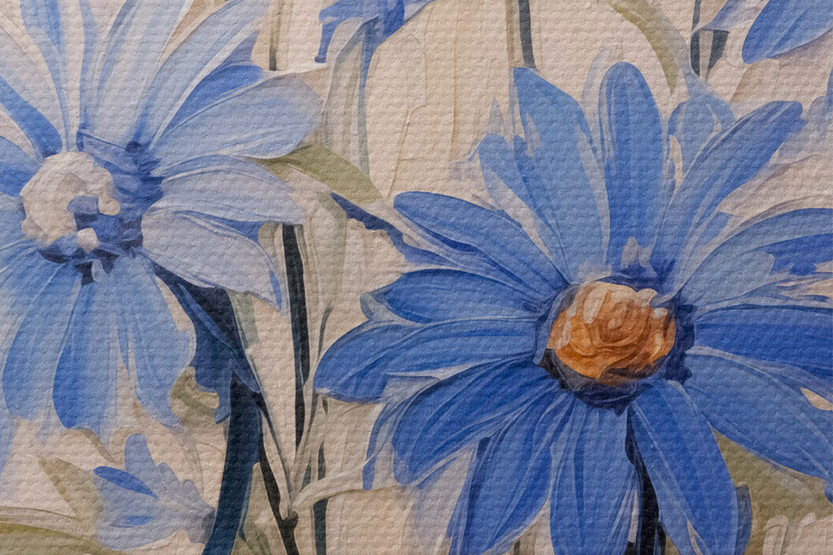 Drei Materialtypen stehen zur Verfügung: Economic Canvas - ein dichtes und haltbares Material für den Digitaldruck, identisch mit Malerleinwand, wasserfeste Oberfläche, realistische Wiedergabe von Details, mittelkörniges Material. Premium Canvas - die Textur ähnelt der einer Malerleinwand (verwobene kleine Fäden). Weiche, detaillierte Wiedergabe des Bildes auf einer matten Oberfläche. Eco-Premium - hochwertiges Gewebe aus 100% Baumwolle. Dank der natürlichen Baumwollfasern ist das Material langlebig und verschleißfest. Hervorragende Farbwiedergabe und Detailtreue.