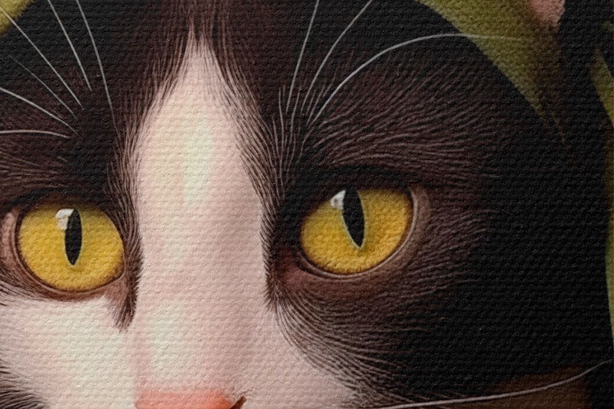 Runde Wandbilder Katze im Porträtstil mit Perlenohrring Nr r42486