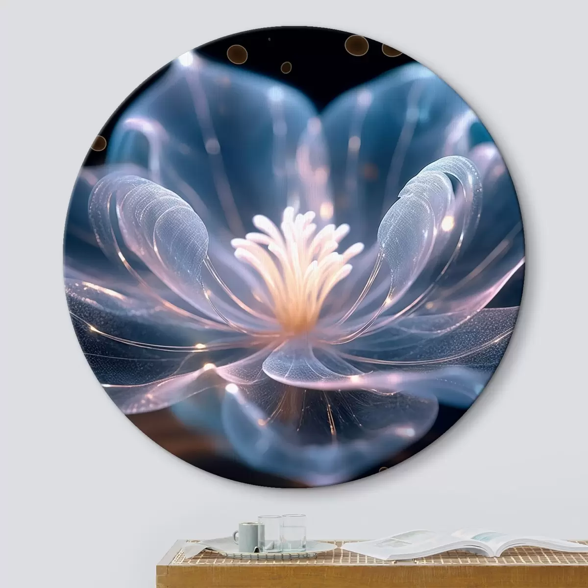 Runde Wandbilder Helle Blume mit transparenten Blütenblättern auf dunklem Hintergrund r42488