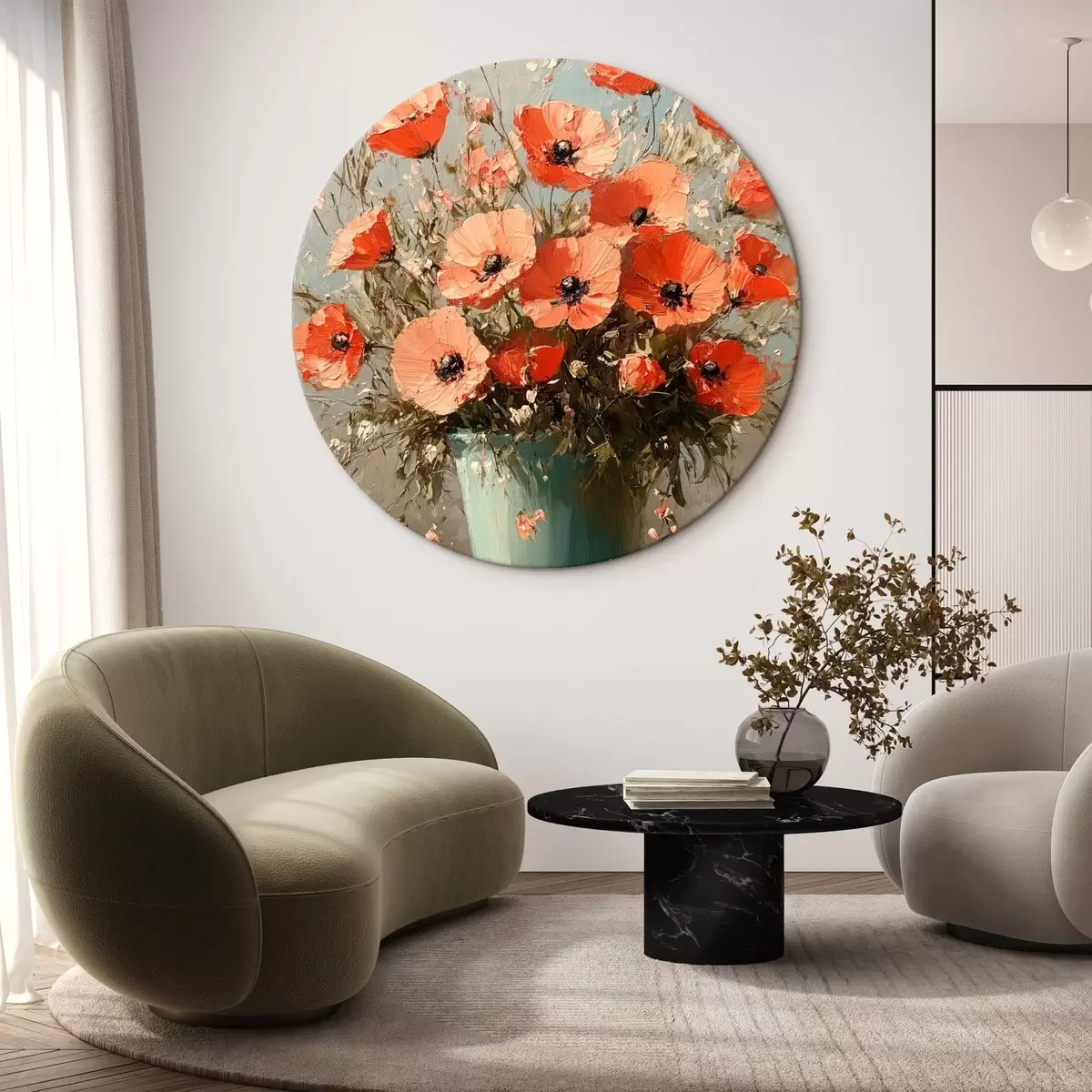 Runde Wandbilder Strauß roter Mohnblumen r42492