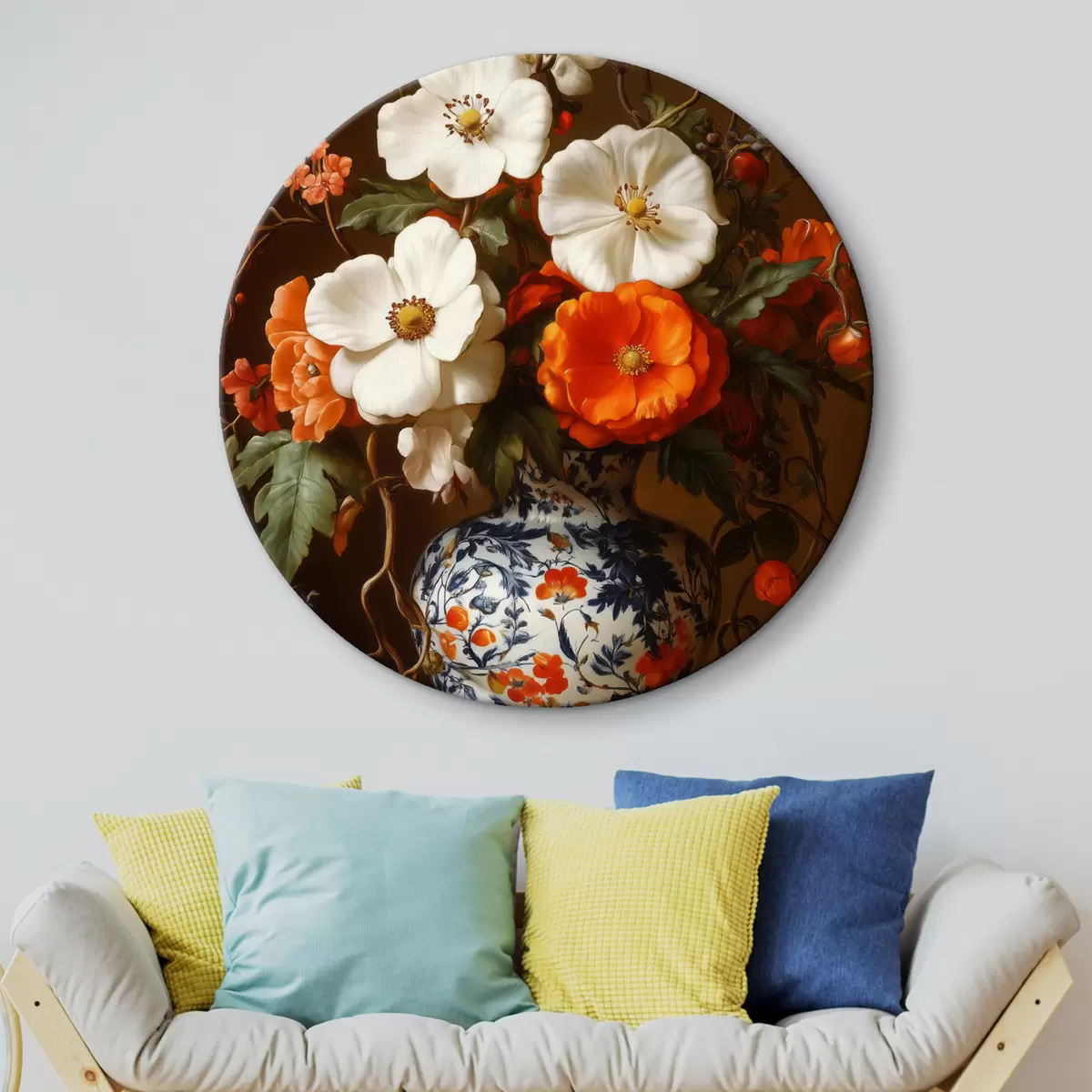 Runde Wandbilder Blumenstrauß in einer bemalten Vase r42497