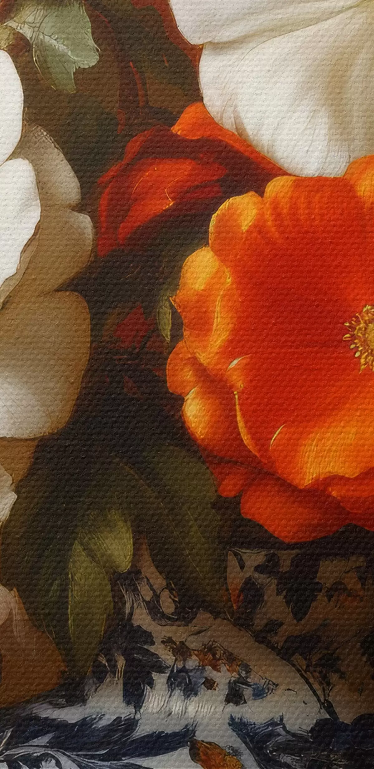 Drei Materialtypen stehen zur Verfügung: Economic Canvas - ein dichtes und haltbares Material für den Digitaldruck, identisch mit Malerleinwand, wasserfeste Oberfläche, realistische Wiedergabe von Details, mittelkörniges Material. Premium Canvas - die Textur ähnelt der einer Malerleinwand (verwobene kleine Fäden). Weiche, detaillierte Wiedergabe des Bildes auf einer matten Oberfläche. Eco-Premium - hochwertiges Gewebe aus 100% Baumwolle. Dank der natürlichen Baumwollfasern ist das Material langlebig und verschleißfest. Hervorragende Farbwiedergabe und Detailtreue.