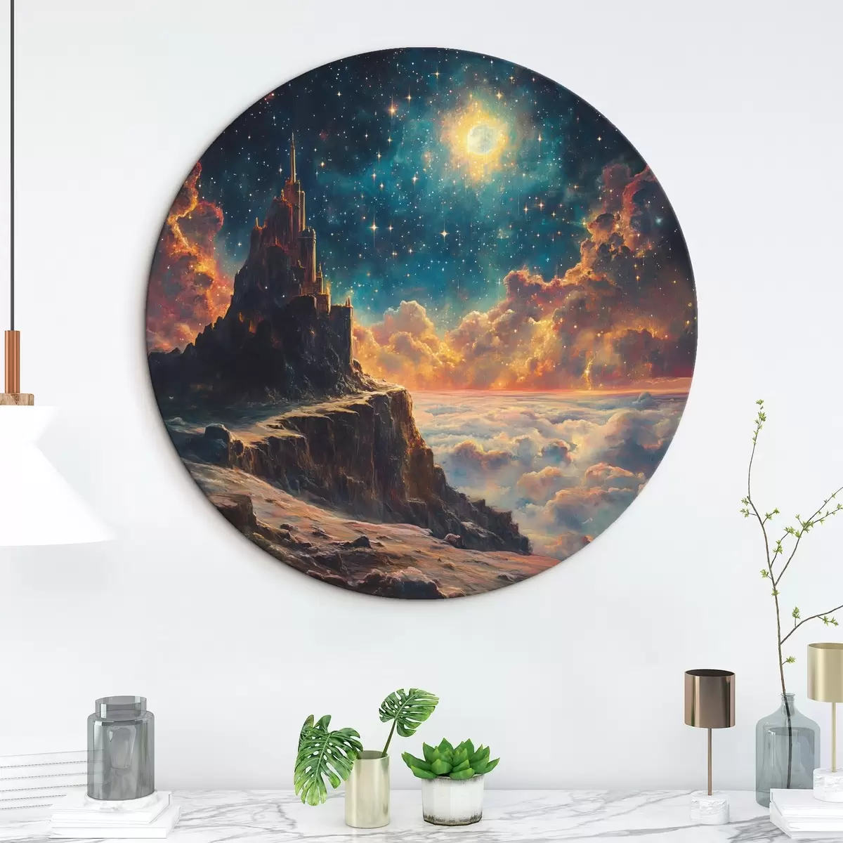 Runde Wandbilder Berge und nächtlicher Sternenhimmel Nr r42500