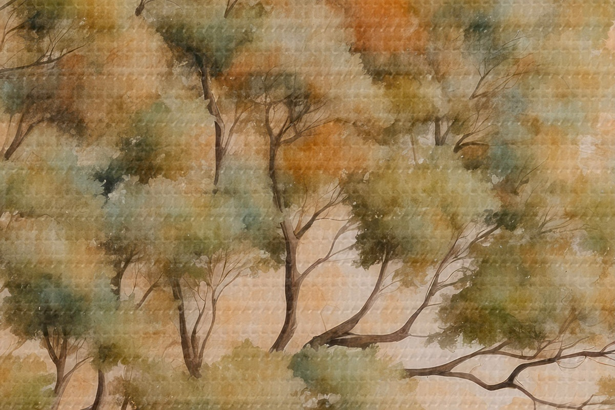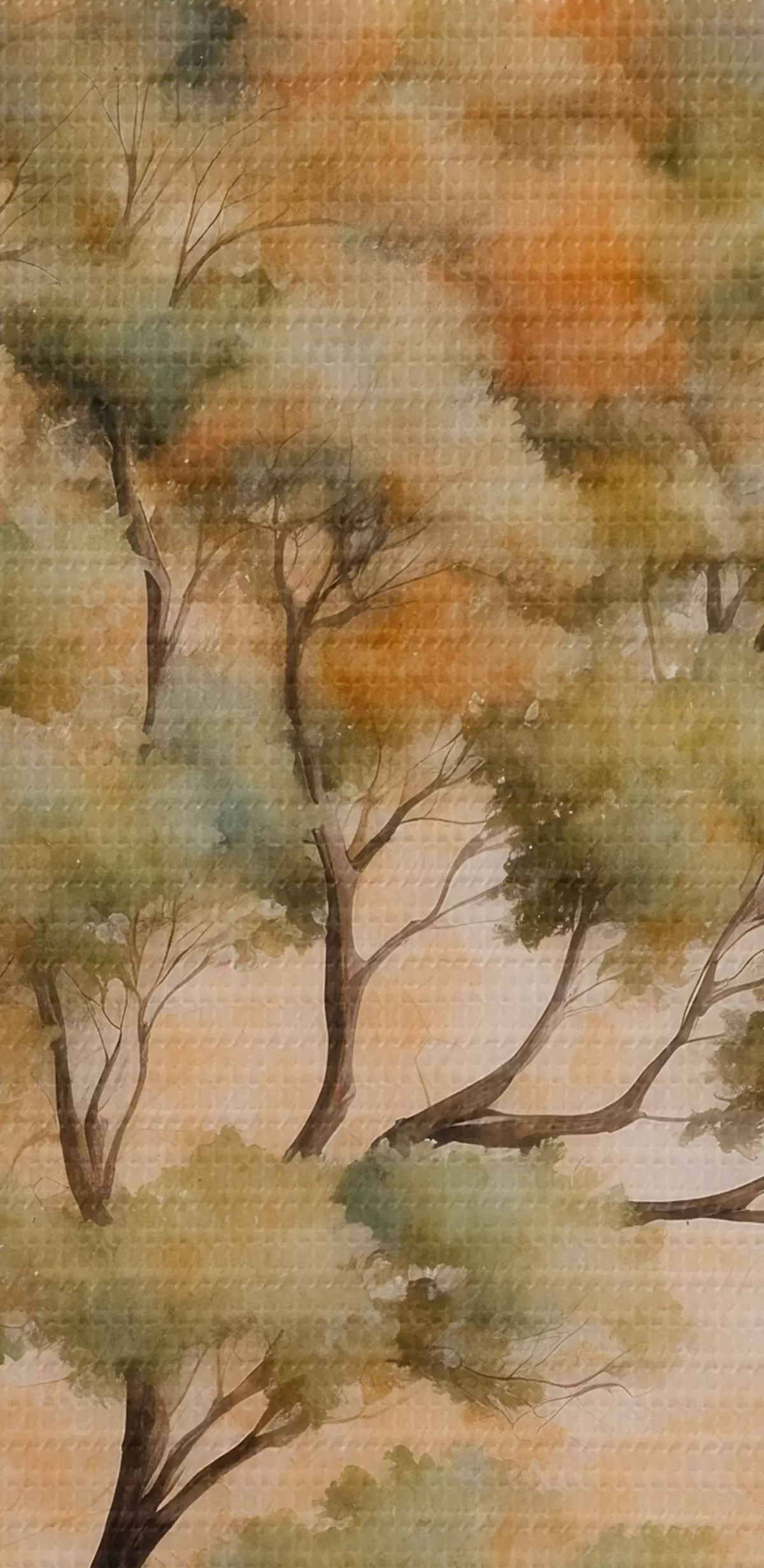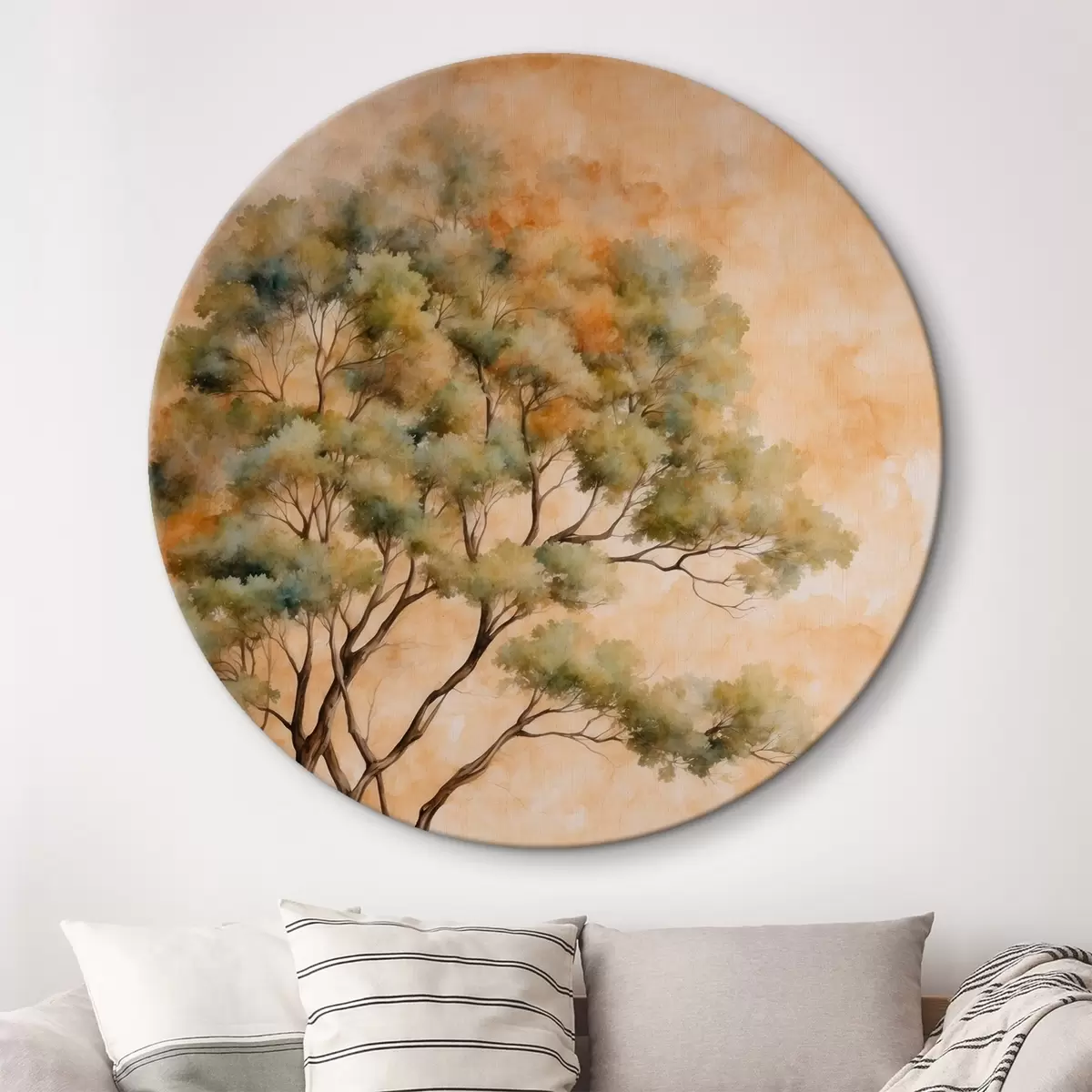 Runde Wandbilder Baum auf orange und weißem Hintergrund in Aquarellmalerei Stil r42514