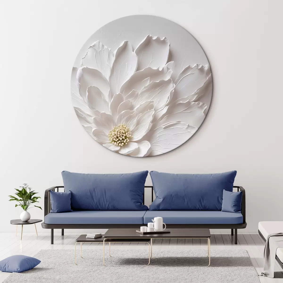 Runde Wandbilder Weiße Blume auf weißem Hintergrund r42517