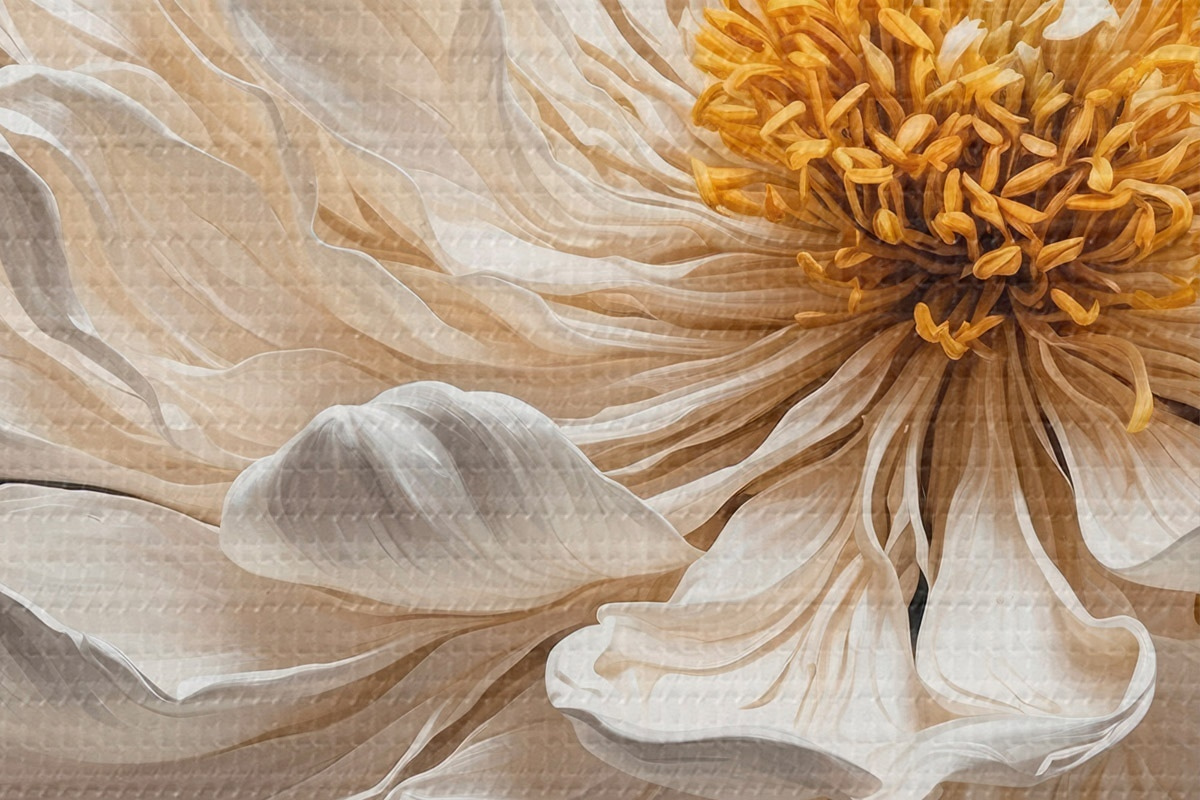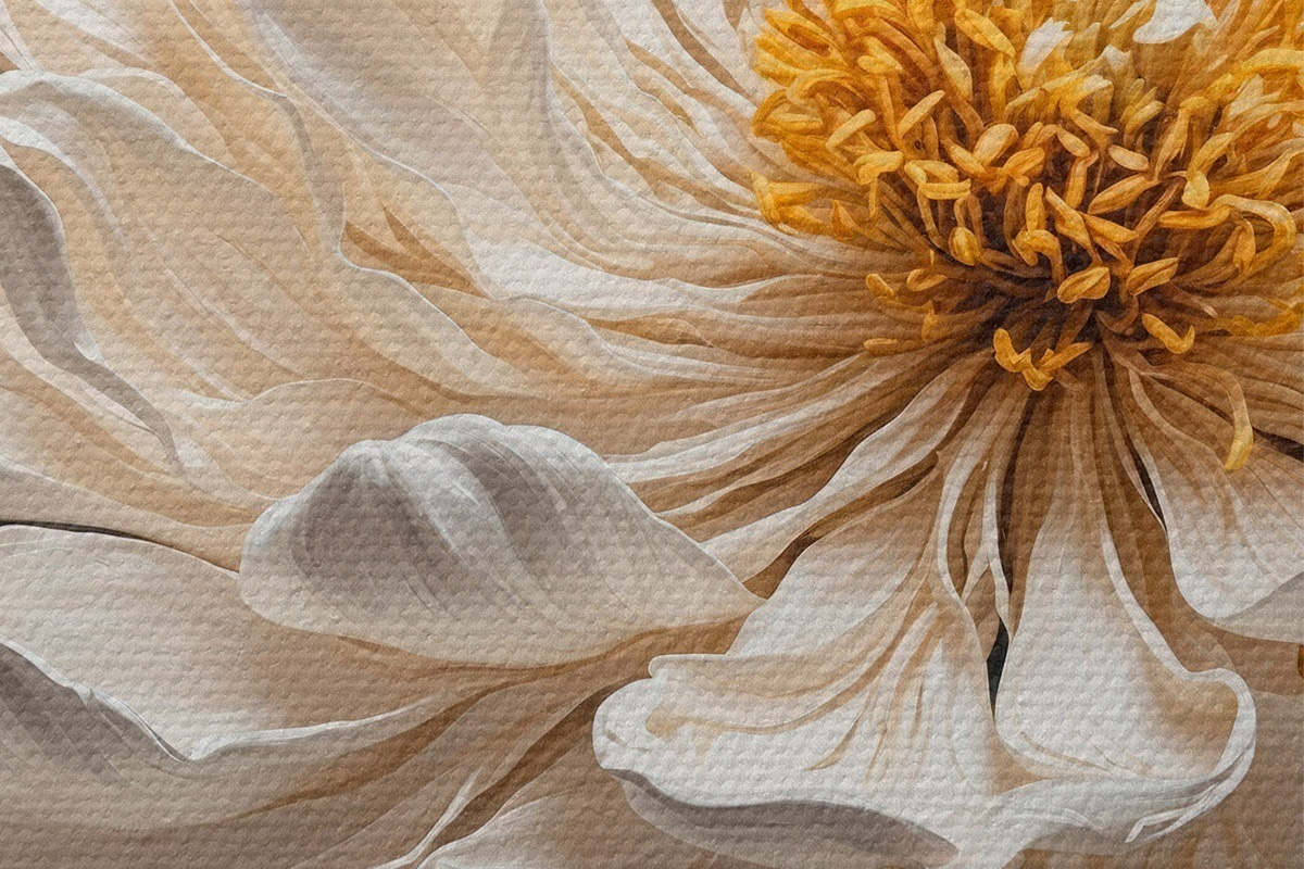 Runde Wandbilder Weiße Blume auf schwarzem und beigem Hintergrund r42522