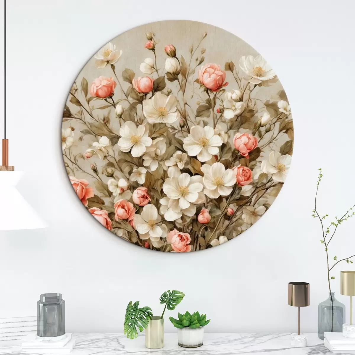 Runde Wandbilder Blumen in transparenter Vase auf beigem Hintergrund Nr r42534