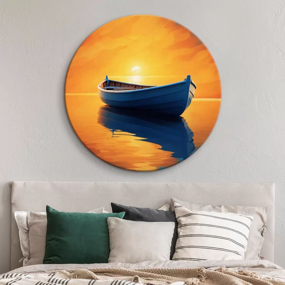 Runde Wandbilder Boot im Meer bei Sonnenuntergang r42536