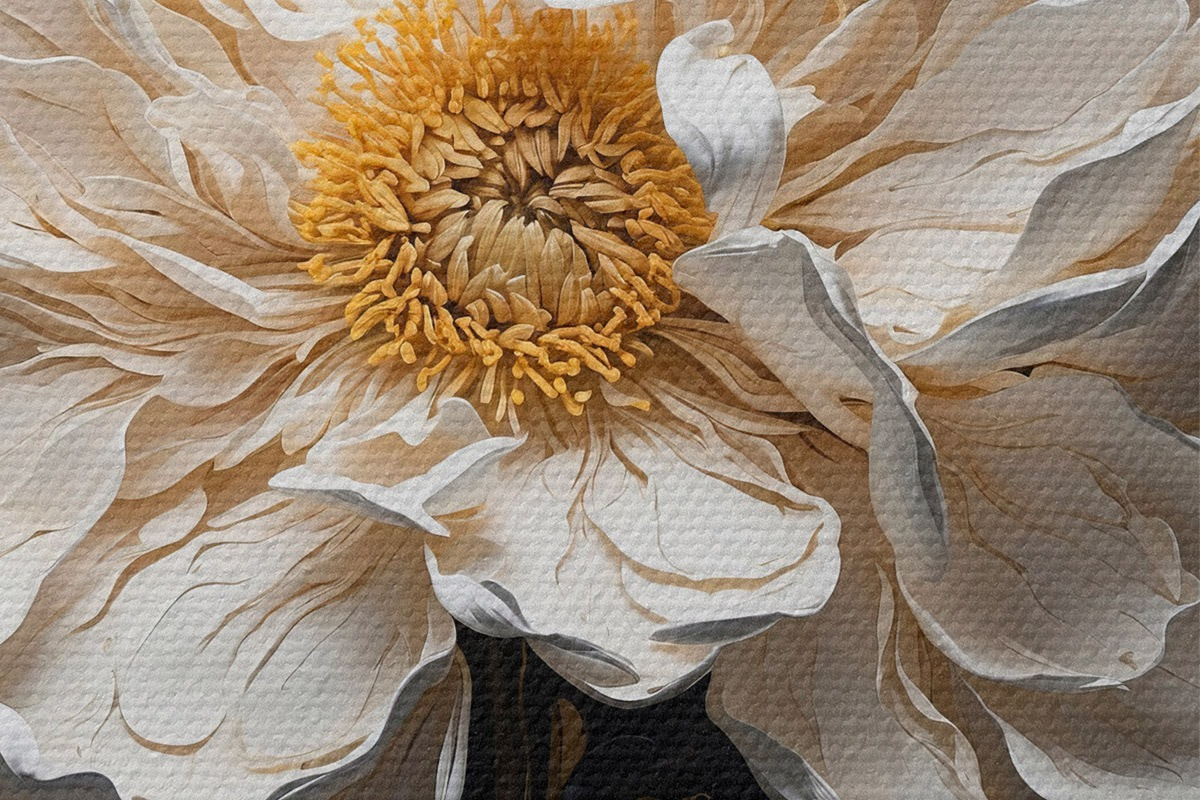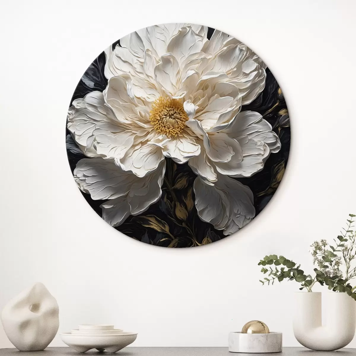 Runde Wandbilder Weiße Blume auf schwarzem Hintergrund im Stil der Ölmalerei r42544