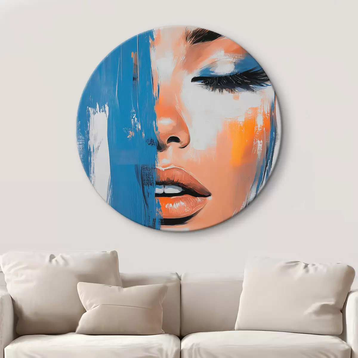 Runde Wandbilder Porträt einer Frau mit Pinselstrichen r42553