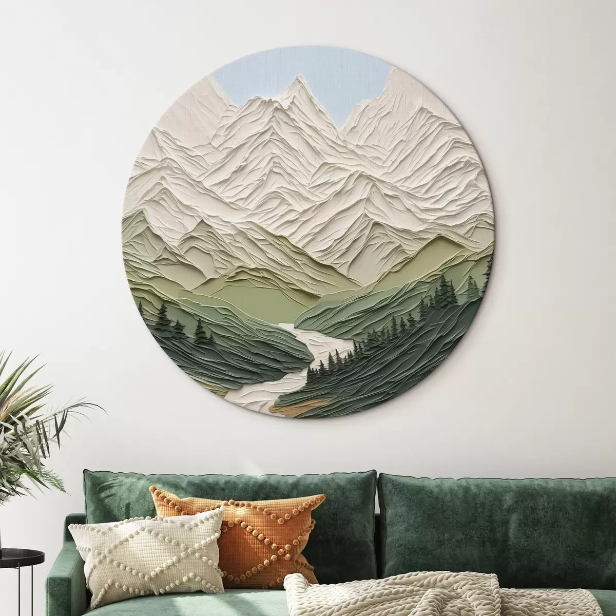 Runde Wandbilder Berglandschaft Nachahmung Pinselstriche r42590