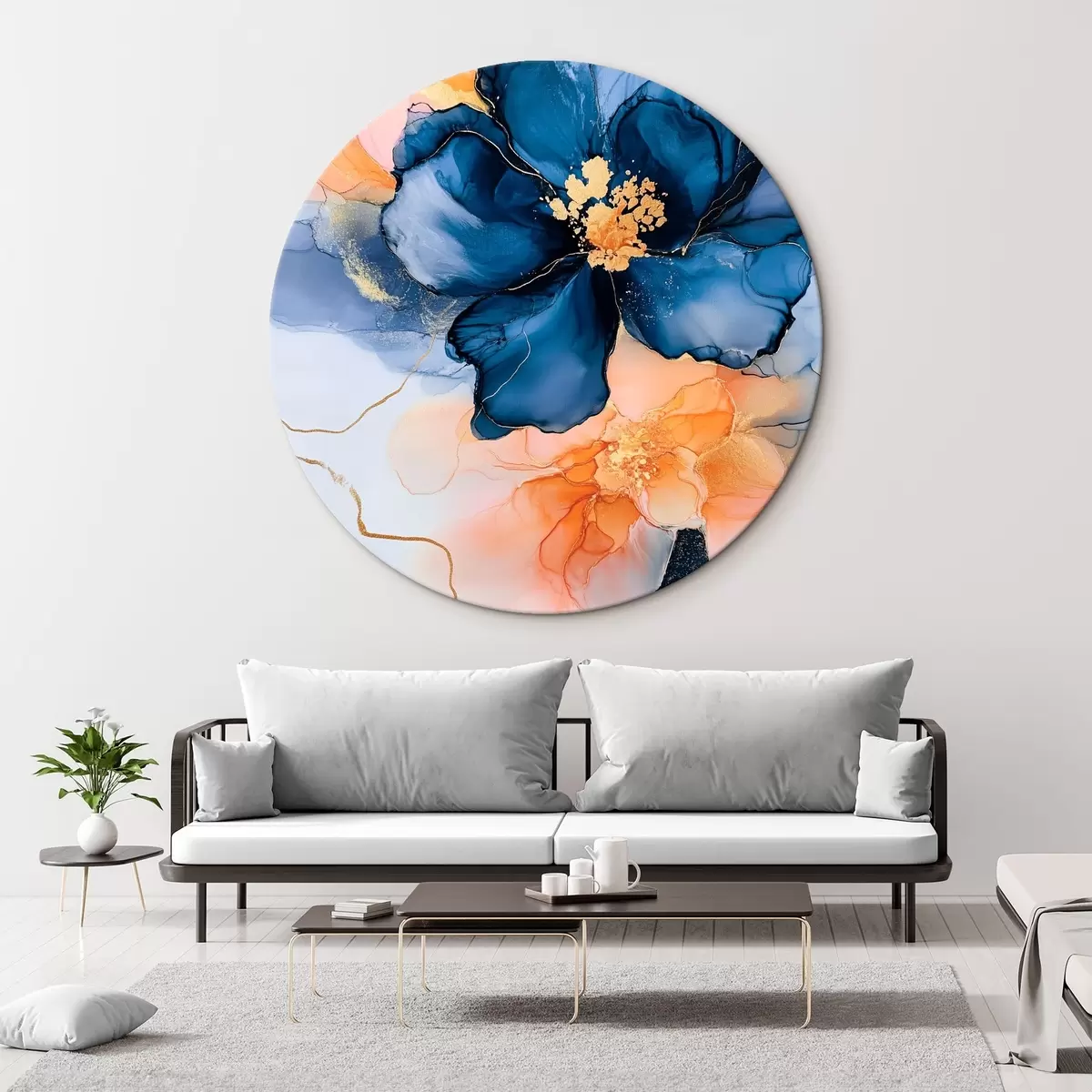 Runde Wandbilder Die Blumen sind mit der Alkoholtinten-Technik gezeichnet r42605