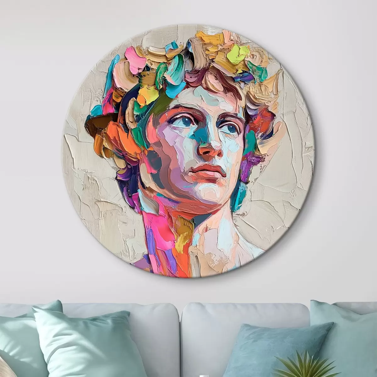 Runde Wandbilder Kopf von David mit mehrfarbigen Strichen r42607